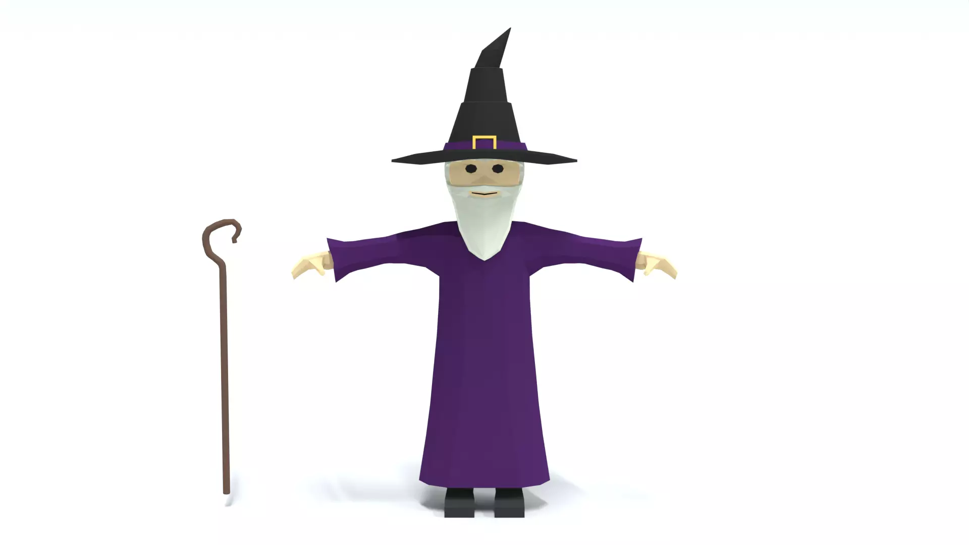 Τhis is a low poly 3D model of a Wizard. The low poly wizard was modeled and prepared for low-poly style renderings, background, general CG visualization presented as 3 meshes with quads/tris. The hat and the staff are seperateobjects.