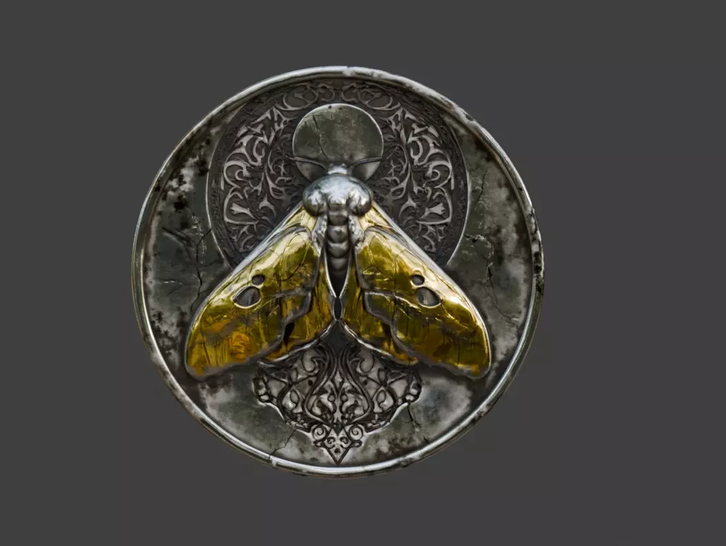 This 3D model is ideal for fantasy RPGs, dark fantasy settings, mythological worlds, cinematic scenes, VR/AR experiences, and concept art visualization. It can function as a magical relic, ceremonial token, enchanted amulet, or symbolic quest item. Whether displayed as a wearable medallion, a shrine object, or a collectible artifact, the Lunar Moth Medallion draws attention through its symbolism and refined design.