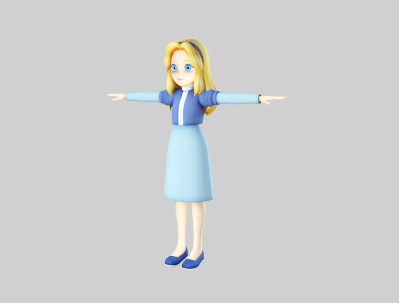 Character Summary: Name: Maria Robotnik First Appearance: Sonic Adventure 2 (2001) Affiliation: Space Colony ARK Relation: Granddaughter of Professor Gerald Robotnik, cousin to Dr. Eggman Significance: Central to Shadow the Hedgehog’s backstory Personality: Kind, gentle, optimistic; serves as Shadow’s emotional anchorOutfit: Light blue dress with long sleeves White collar and cuffs Red bow tie or ribbon at the chest White tights and black shoes Hair & Face: Golden blonde, shoulder-length hair with curled ends Large blue eyes Soft, anime-style proportions — childlike appearance No heavy makeup or stylizationTextures: Painted-style diffuse maps (early games) No normal/specular maps in original models Fan retextures may include PBR maps for modern renderingAvailable Model Formats .max, .fbx, .obj, .stl,.3ds,