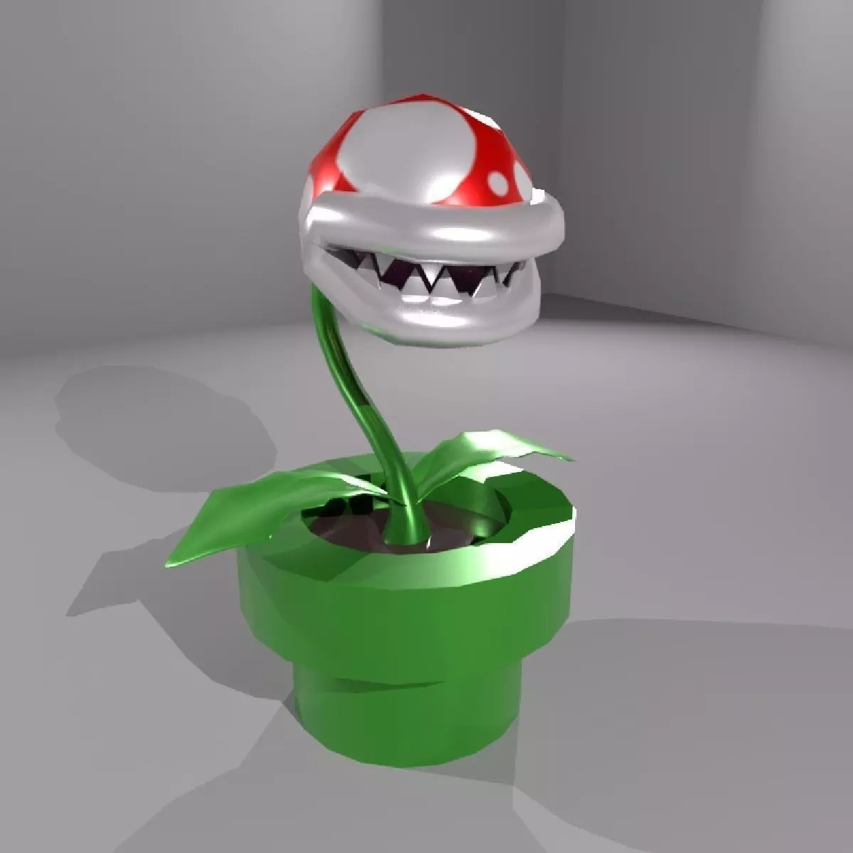 This is a low poly 3D model of Piranha Plant, an iconic enemy throughout the series of 'Mario Bros'.