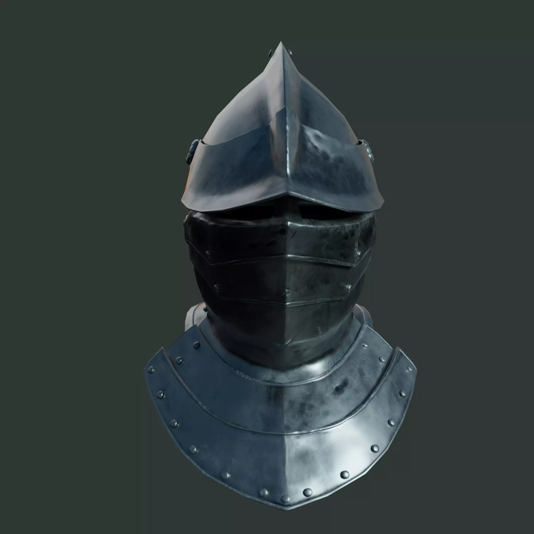 Medieval armor set broken to the parts. Low poly model with with UVs and pbr textures.This one contains helmet