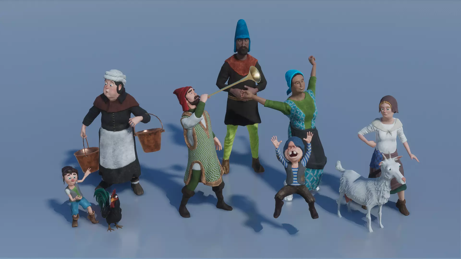 The topology consists of quads and triangles and is optimized for mobile use.Objects are peaceable in character’s hands via placeholders / dummies.Characters are in T-pose.Polygon counts average 4000.