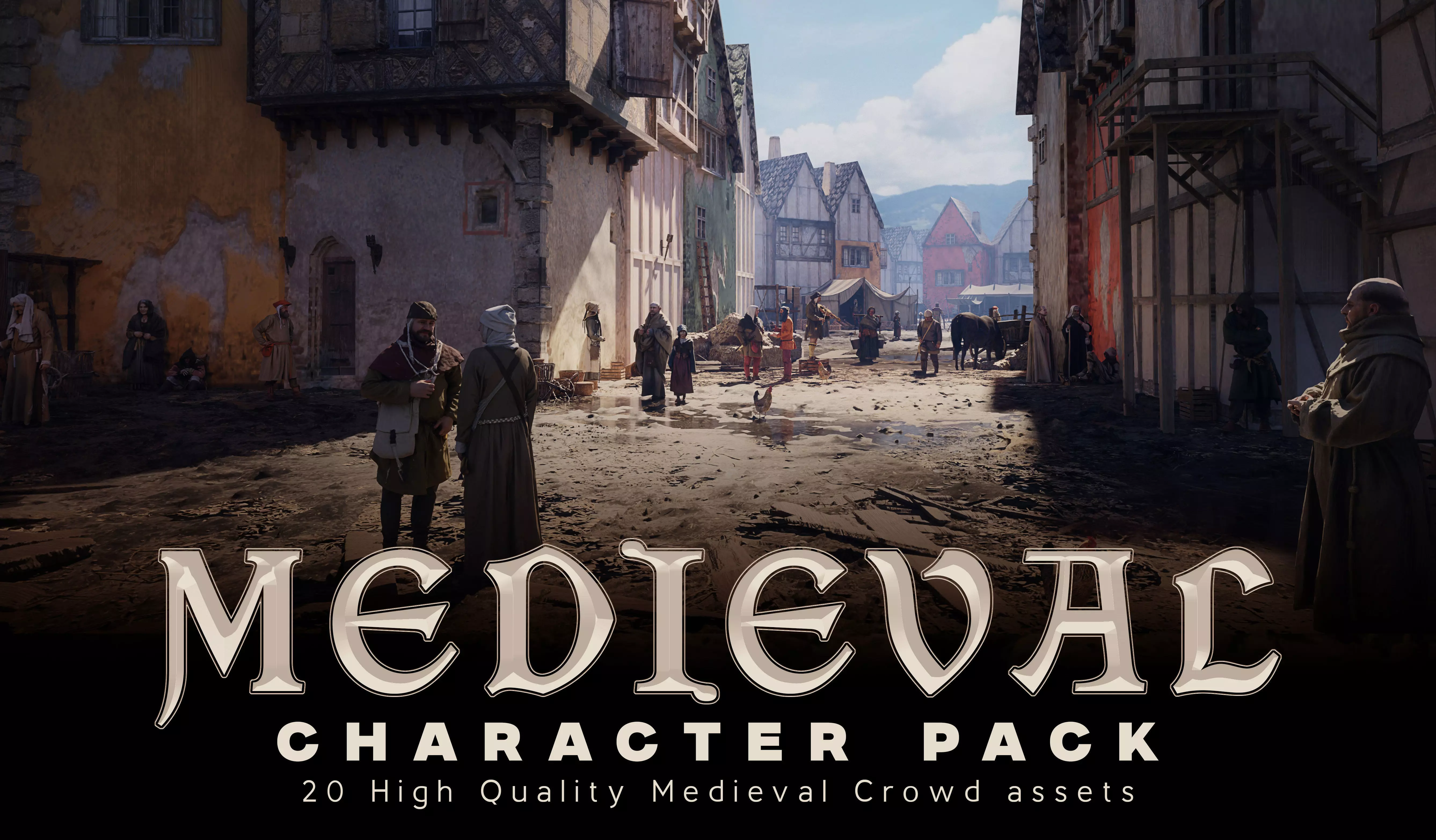 Keywords: Medieval, medieval era, medieval villagers, medieval characters, medieval NPC, medieval crowd, historical characters, Middle Ages, medieval civilians, peasants, townfolk, modular characters, modular character pack, character asset pack, NPC characters, crowd characters, historical clothing, period clothing, civilian NPCs, environment population, crowd asset pack, game assets, 3D characters, character models, background characters, population assets, indie game assets, RPG characters, Unreal Engine, Unity, Blender