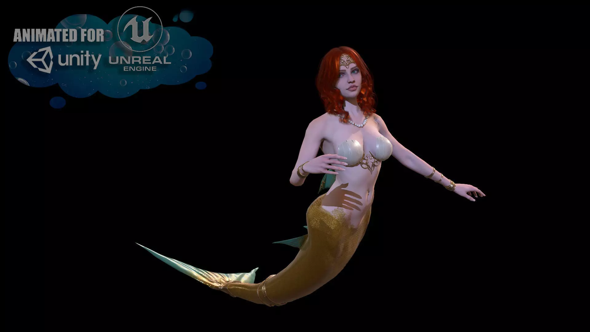 MermaidGameReady mermaid animation Low-poly 3D model