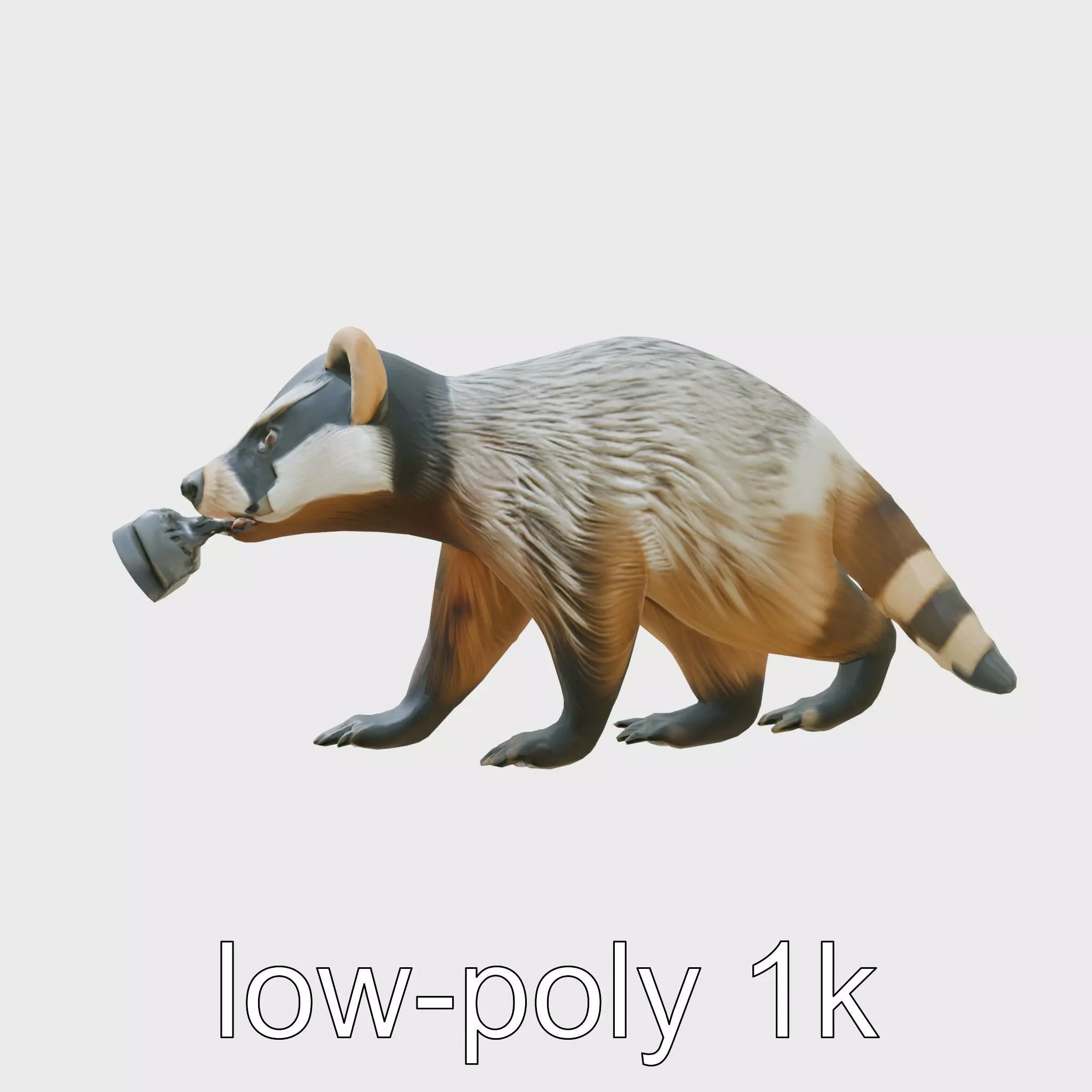 Mountain Badger Engineer with Constructive Paws and Projectiv... Low-poly 3D model