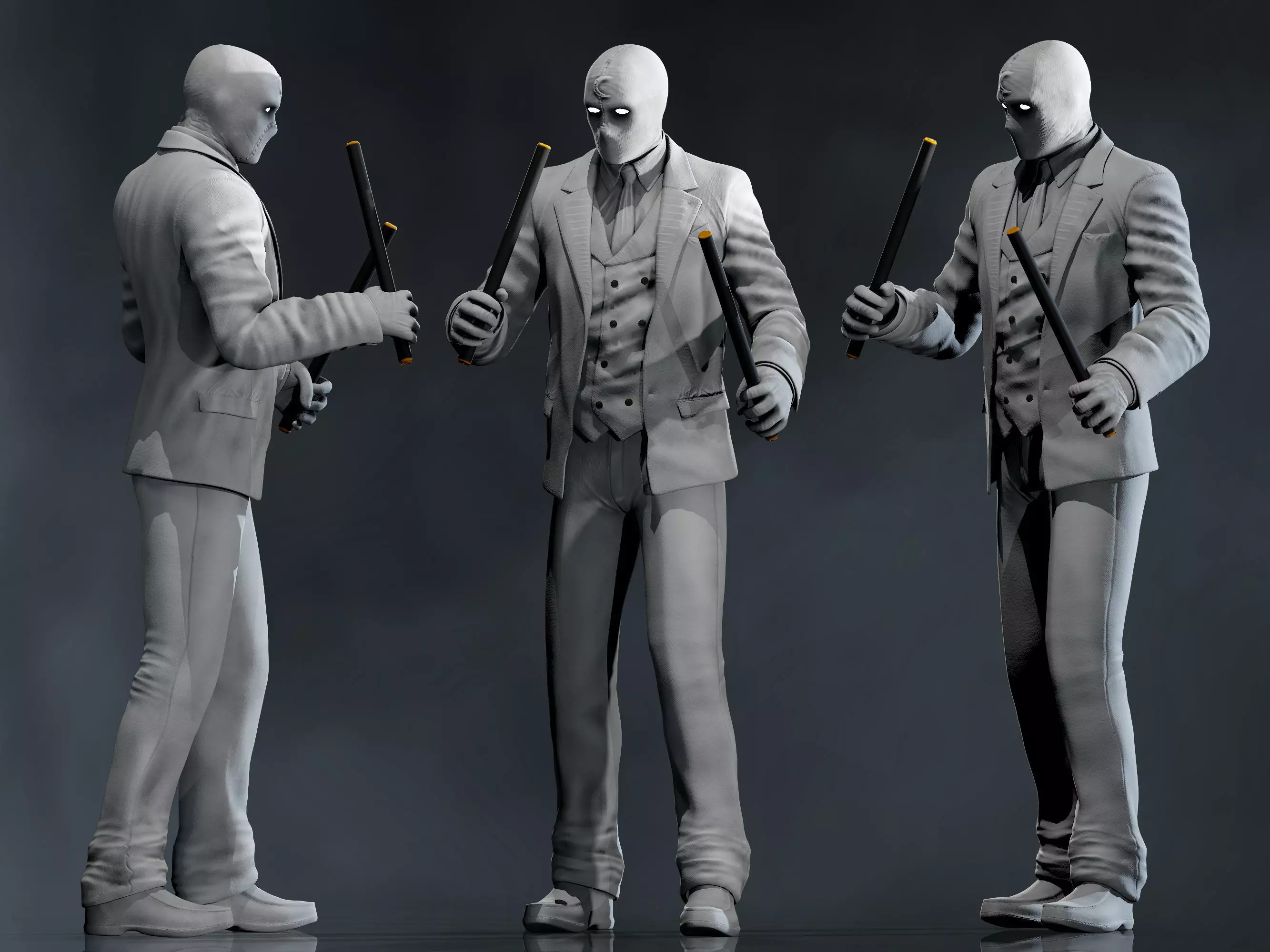 Detailed low poly 3D character Mr. Knight from Moon Knight