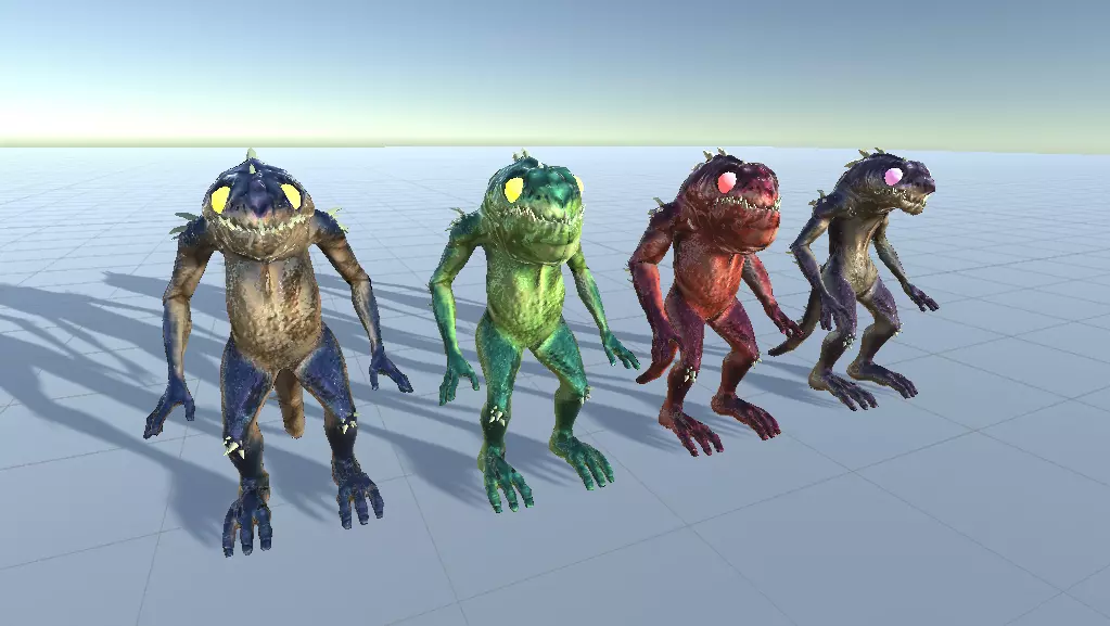 This pack includes 4 of your very own Mirkens! An aquatic swamp-like race that is fully rigged and animated, ready for plug-in-play. Each Mirken has its own specific attribute and area they like call their home, or, make up your own background story to the Mirkens! Some Mirkens spit fire, some spit acid and some are just crazy with a bad sense of socilizing! Have fun making up your own stories behind the Mirkens!