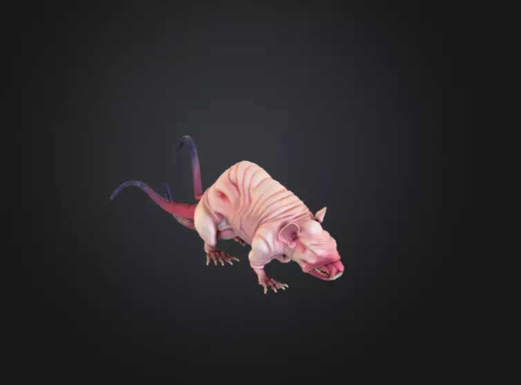 The Mutant Rat is a grotesquely detailed 3D creature model designed to embody the essence of post-apocalyptic horror and bioengineering gone astray. With its hairless, pale-pink skin stretched over sinewy muscle and its dual tails slithering unnaturally, this abomination represents the terrifying outcome of uncontrolled mutation. Every inch of its body is sculpted with an unsettling realism — from the rippling folds of flesh to the glistening wet texture of its malformed face and sharp, yellowed teeth.
