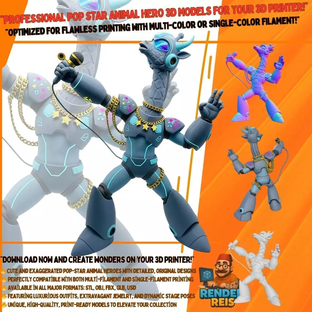 This unique 3D print model blends high-tech design with animal aesthetics to create a futuristic rockstar giraffe ready to rule the stage. With glowing neon elements, robotic armor, and expressive stage presence, this figure brings cyberpunk energy and musical charisma into your collection.