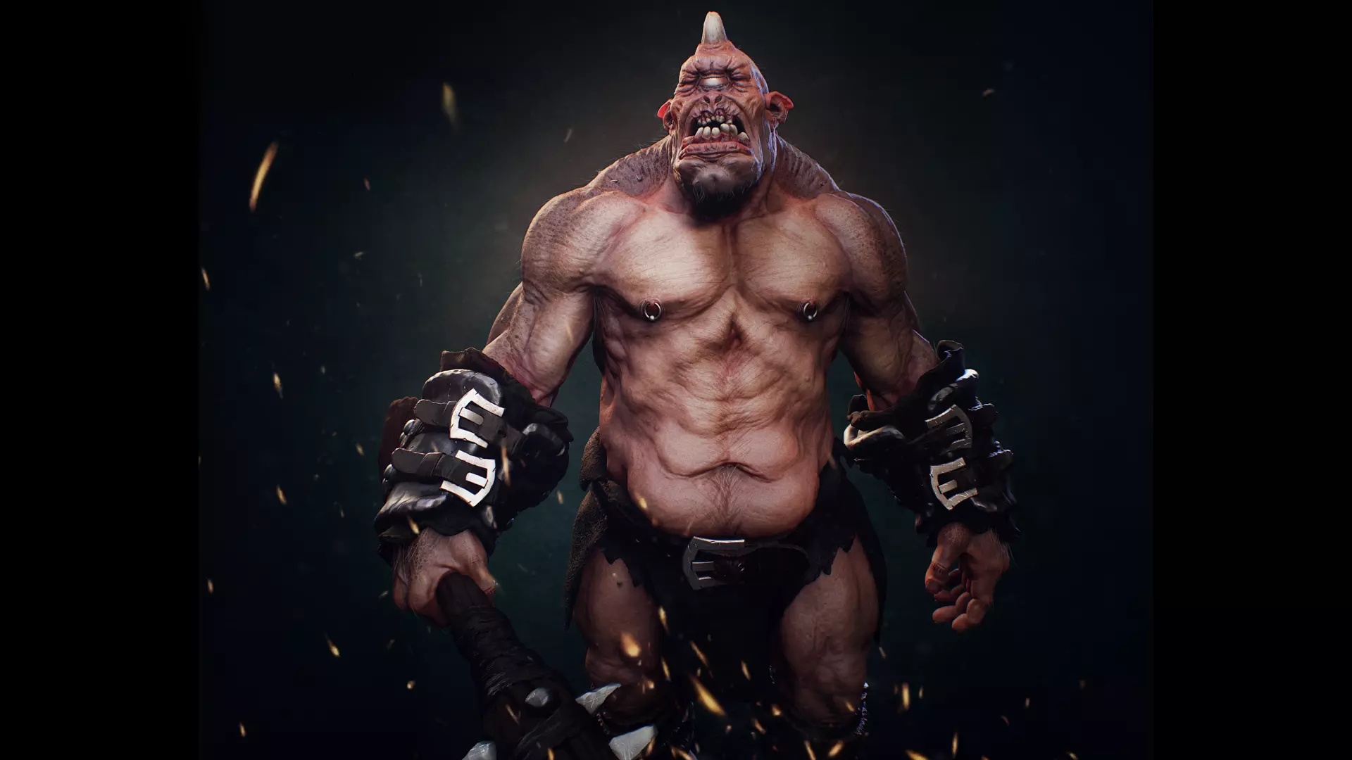 Game-ready ogre cyclops.Sculpted - zbrush, Retopo - 3dCoat, Texturing - substance, Render - Marmoset/UE4Model include:
