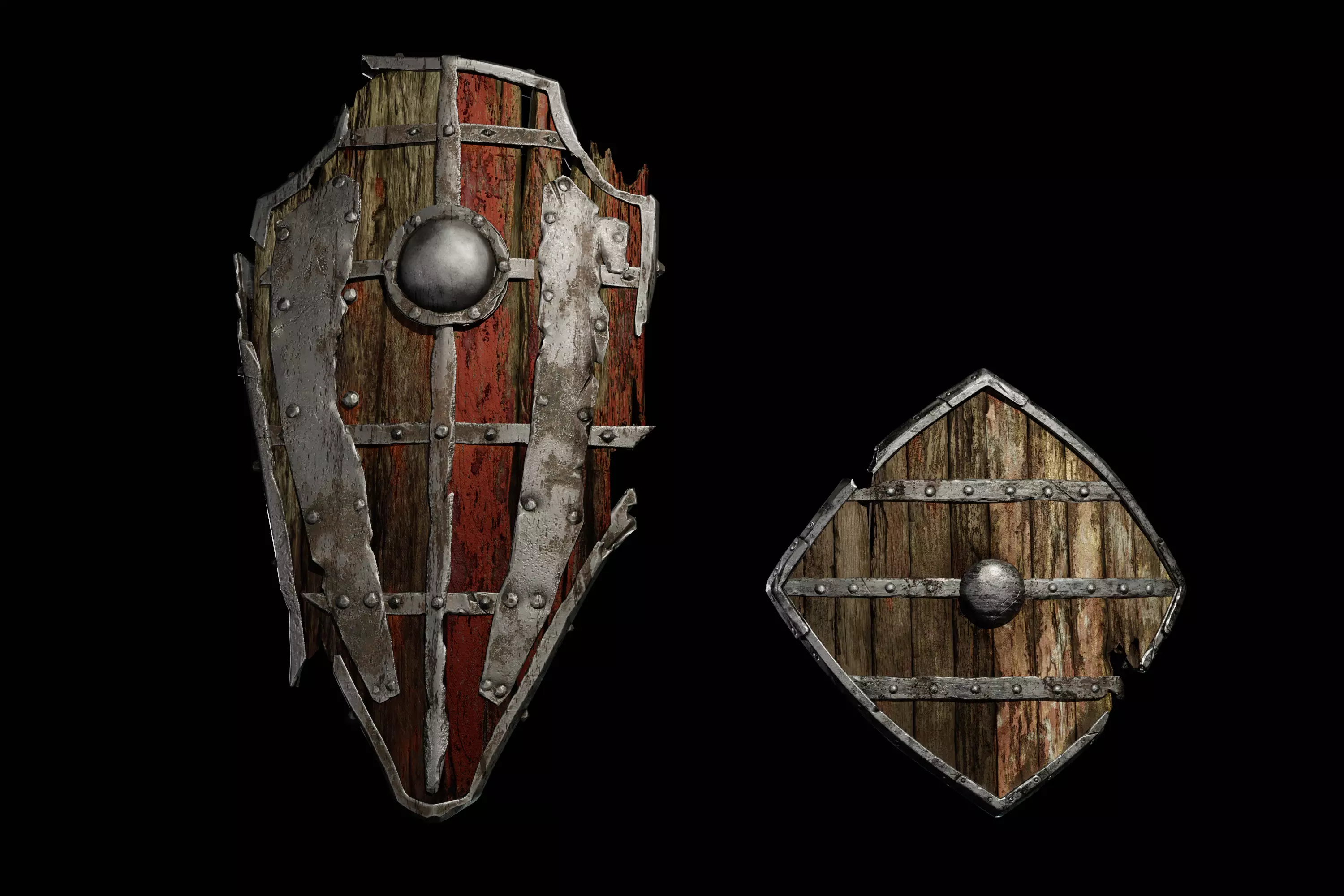 Old Damage shields pack low-poly 3D model Low-poly 3D model