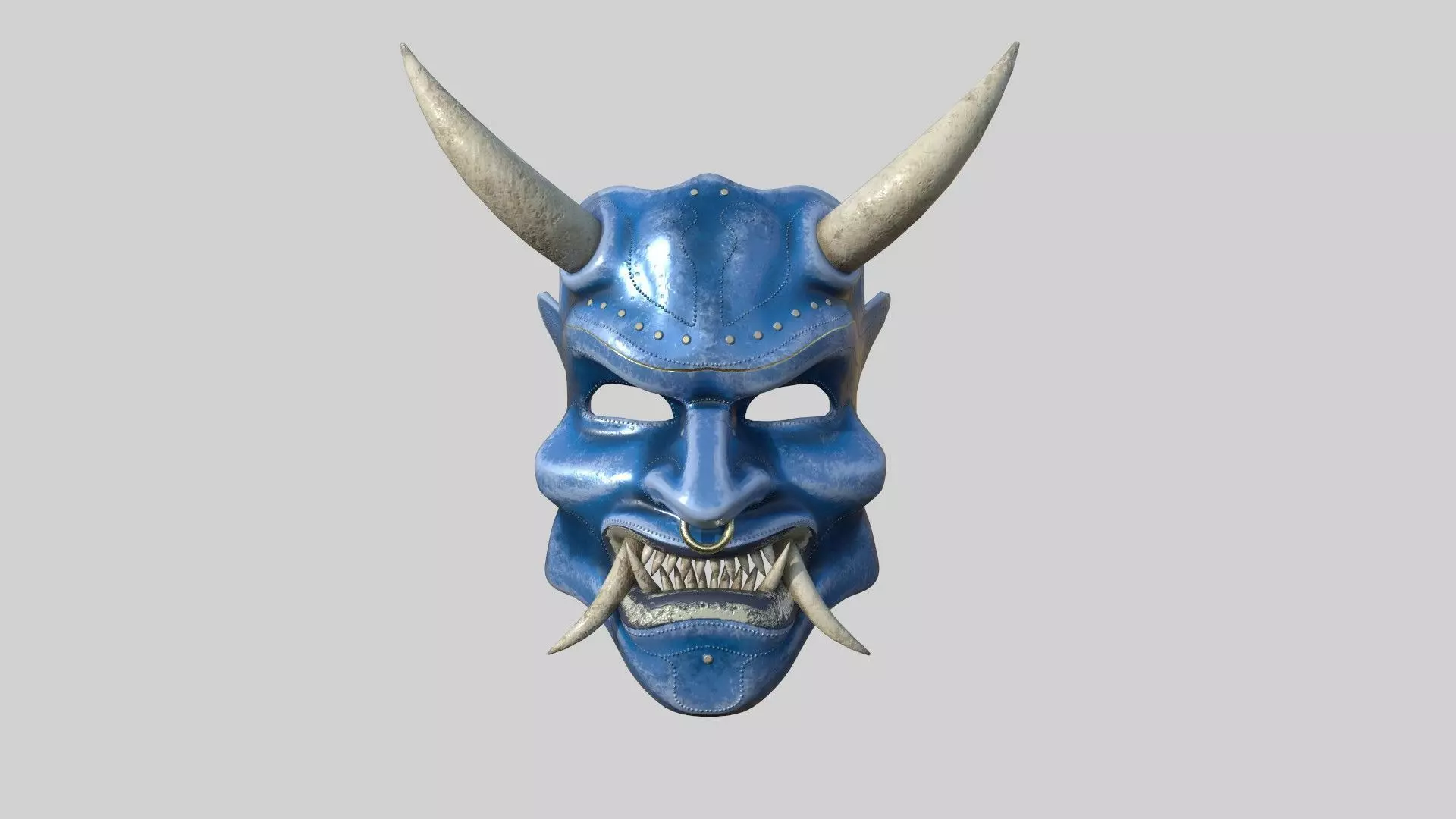 Oni Mask 03 Blue - Hannya Fantasy Character Design Low-poly 3D model