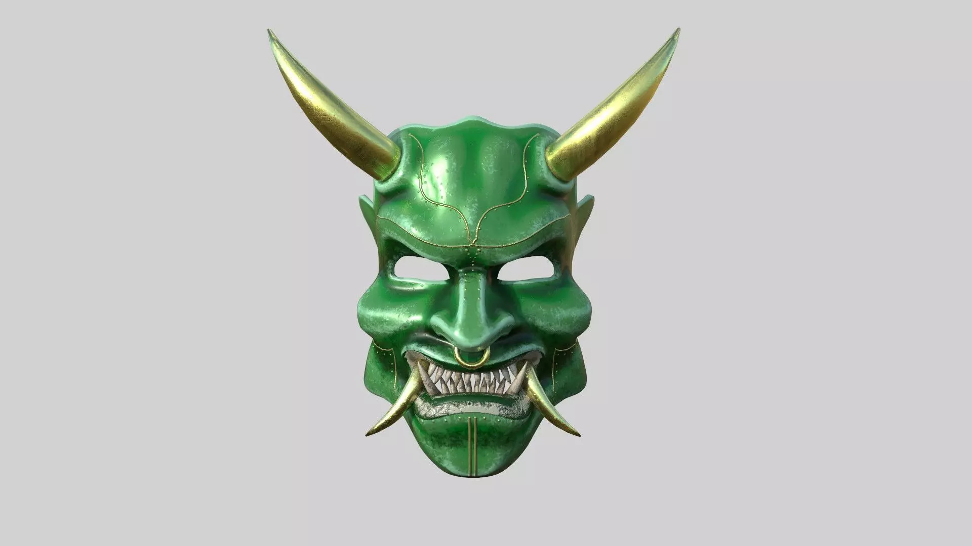 Oni Mask 04 Green - Hannya Fantasy Character Design Low-poly 3D model