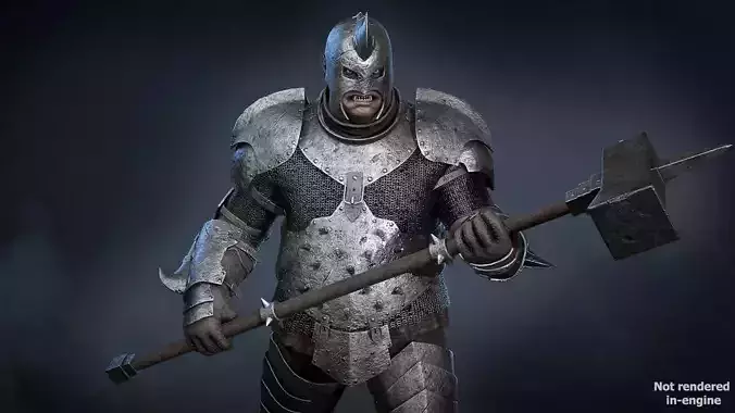 Savage Orc Brute character wielding a heavy two-handed hammer, fully game ready and optimized for real-time use. Built for raw strength and impact, this model is ideal for frontline enemies, elite units, or mini-boss encounters in dark fantasy and medieval settings.