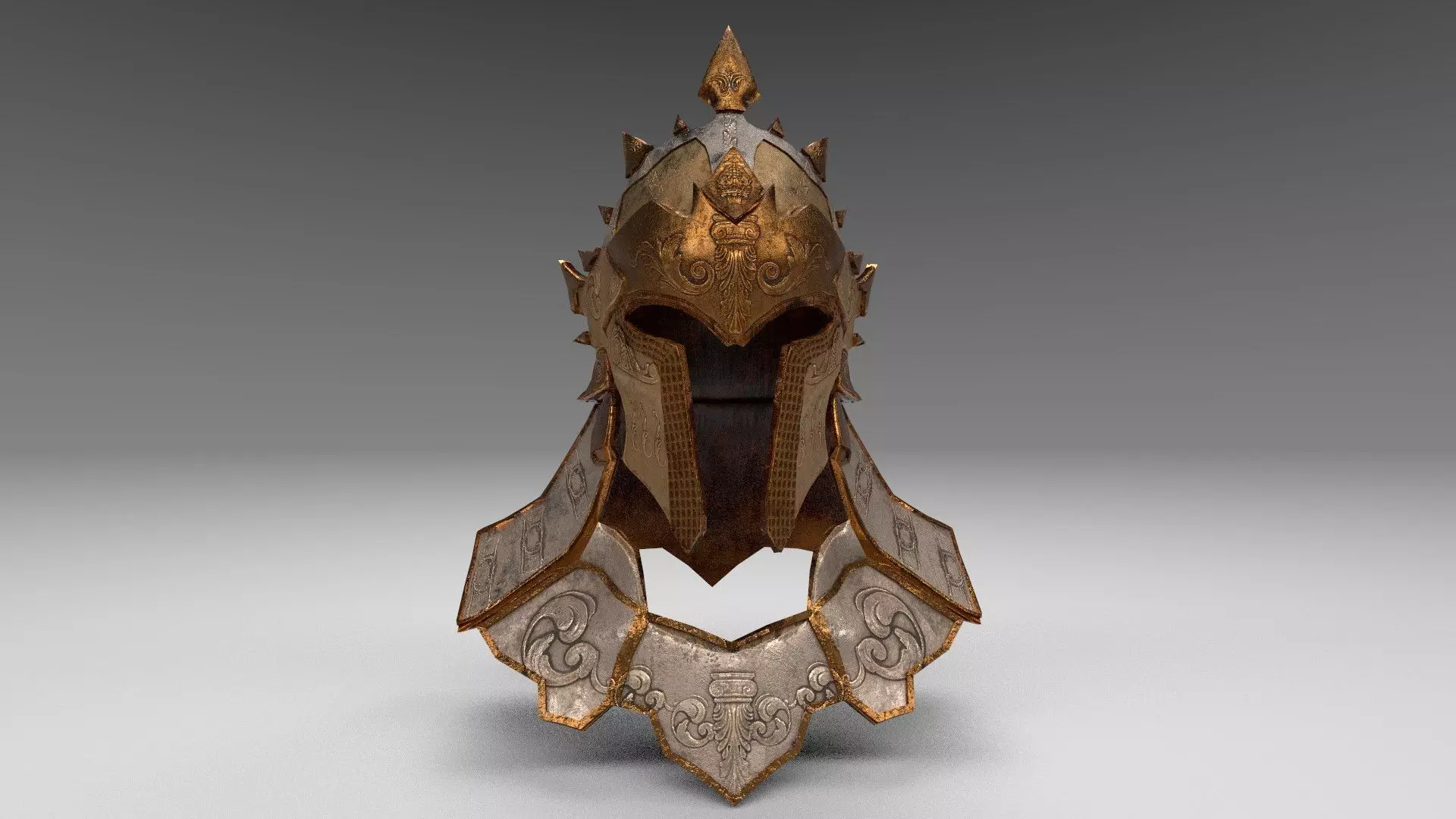 The helmet features an imposing dragon-like silhouette enriched with engraved ornamental patterns and layered metal plates, making it suitable for fantasy characters, warriors, bosses, statues, or cinematic renders.Its balanced design ensures readability from a distance while preserving fine surface details for close-up shots.