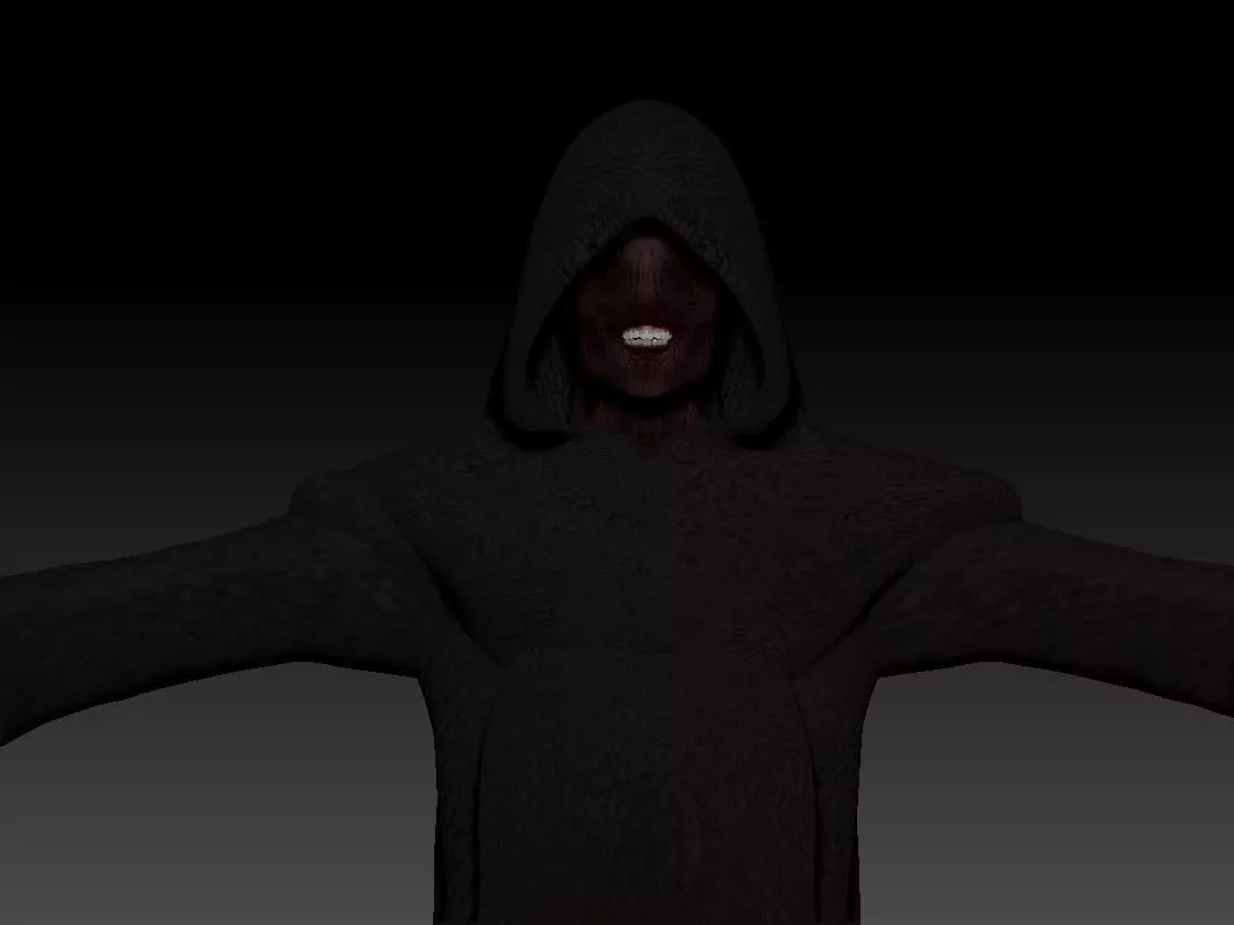 The Otherworld Monk is a monster ispired on the theme of a Silent Hill style survival horror game,This entity was thinked to be a demon that protects the religious worshippers of Samael in the Halo of the sun religion, in the silent hill town history.He has burned flesh and no skin, only muscles out of the body , a hood a mask and a coat, this entity is a form of negative energy, that takes form in something that represents the unconscious fear of religions and religious deprivations.
