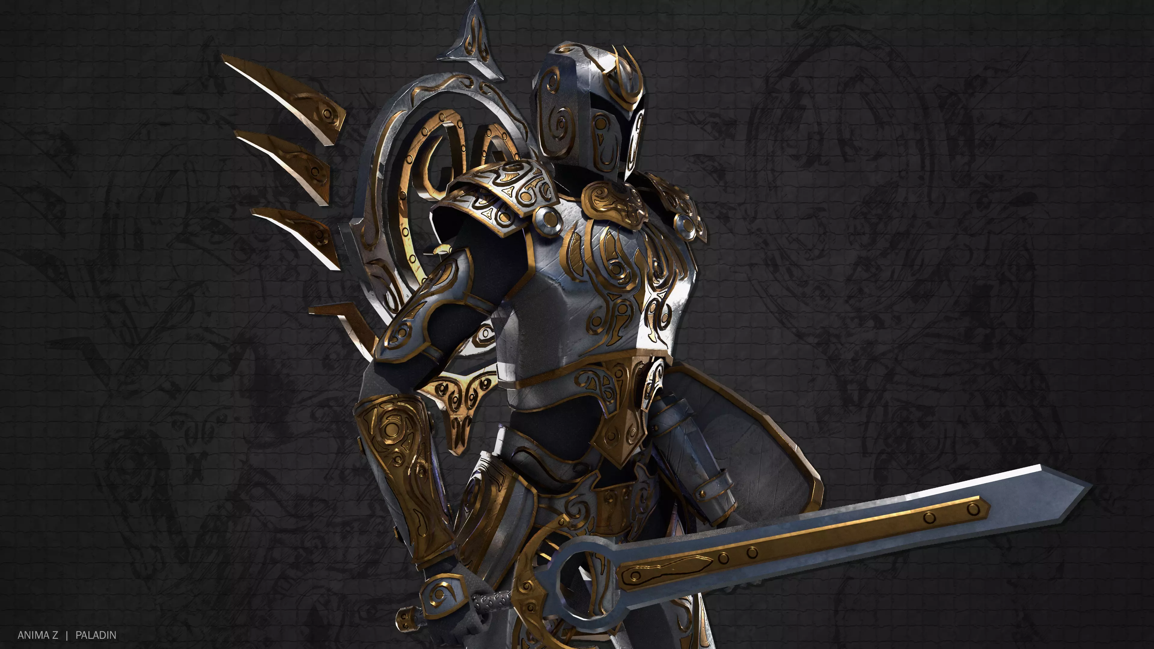 Paladin armored knight Low-poly 3D model