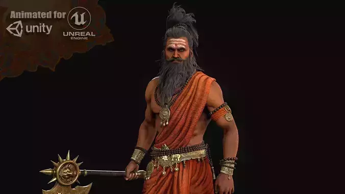 • Low-poly model of the character Parashuram indian Hero