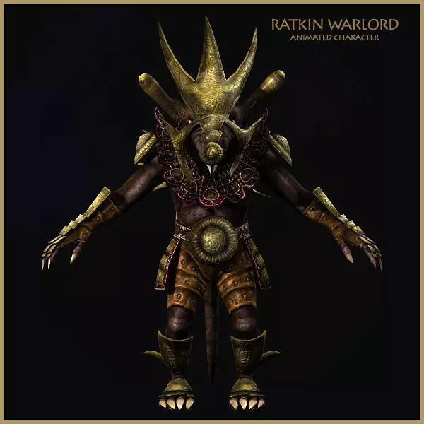 Low polygonal game ready animated model of Ratkin Warlord with his skeleton in 3D Max file version 2009.