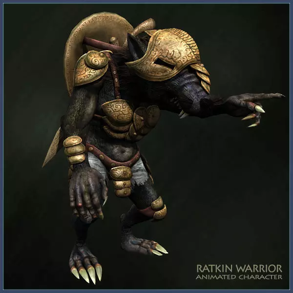Low polygonal game ready animated model of Ratkin Warrior in 3D Max file version 2009.