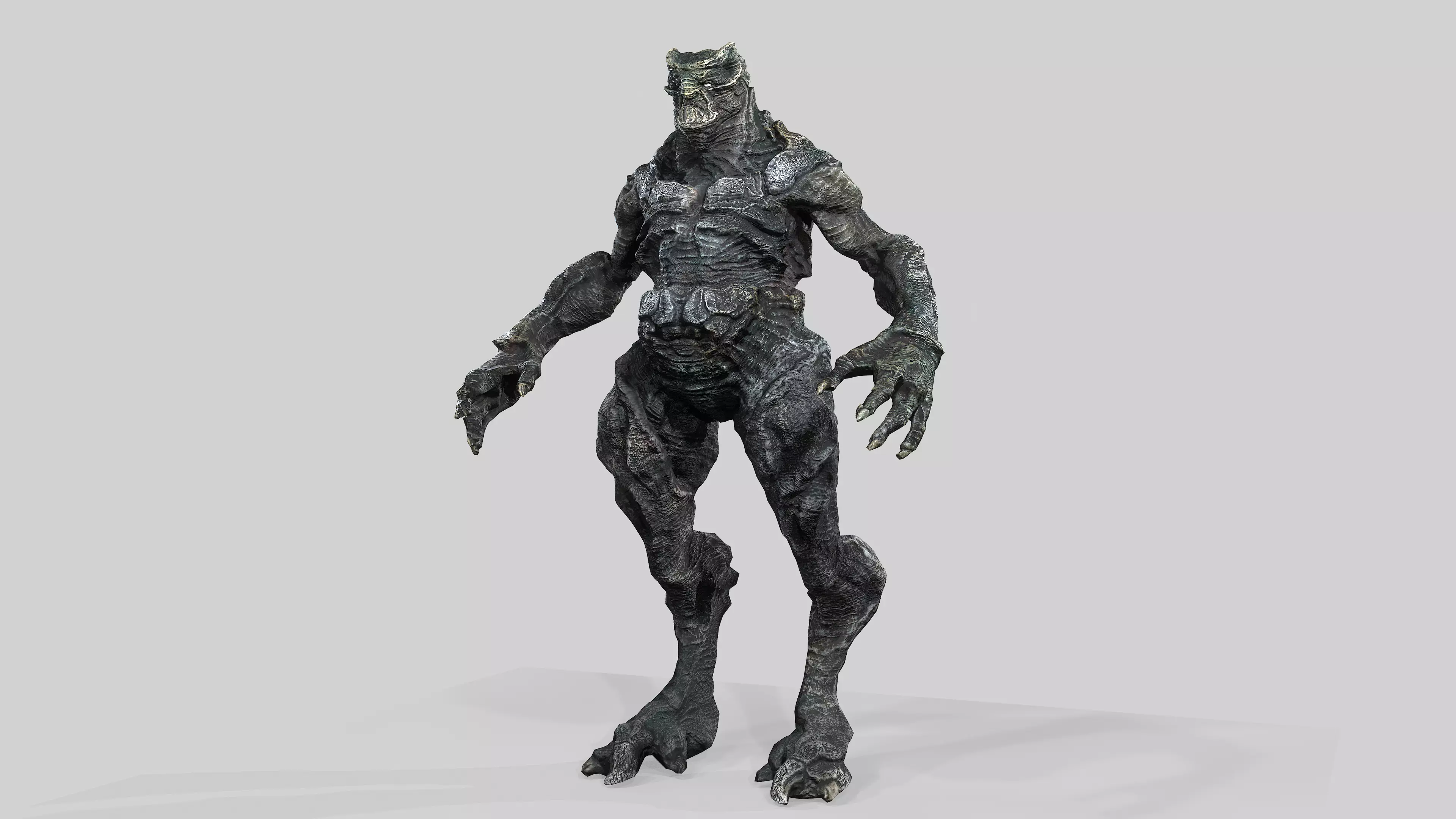 Game-ready low-poly 3D model of a grey-skinned monster with thick, folded skin and a rugged organic design. Perfect for horror, sci-fi, or fantasy games. Optimized for real-time engines, with PBR textures for realistic rendering.