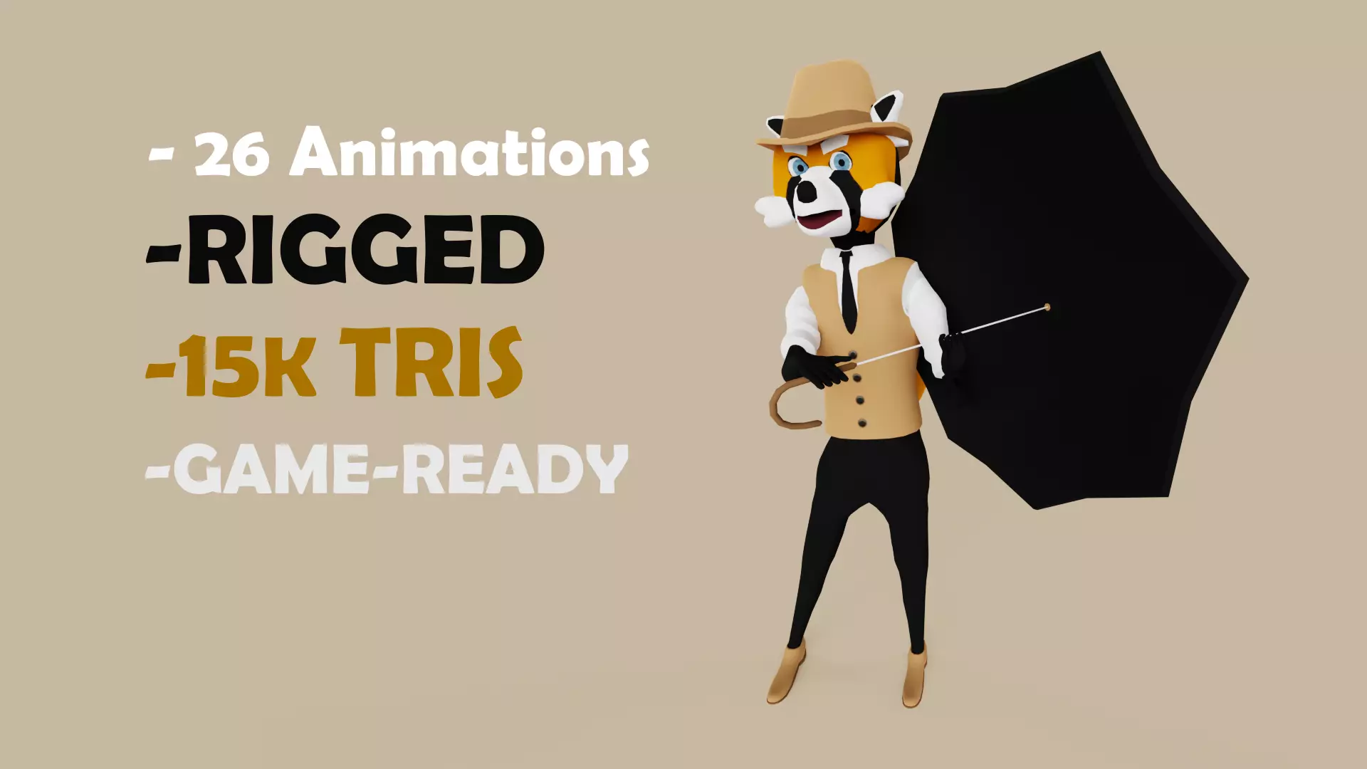 The red panda character has a 2048px diffuse texture and 15k tris poly count