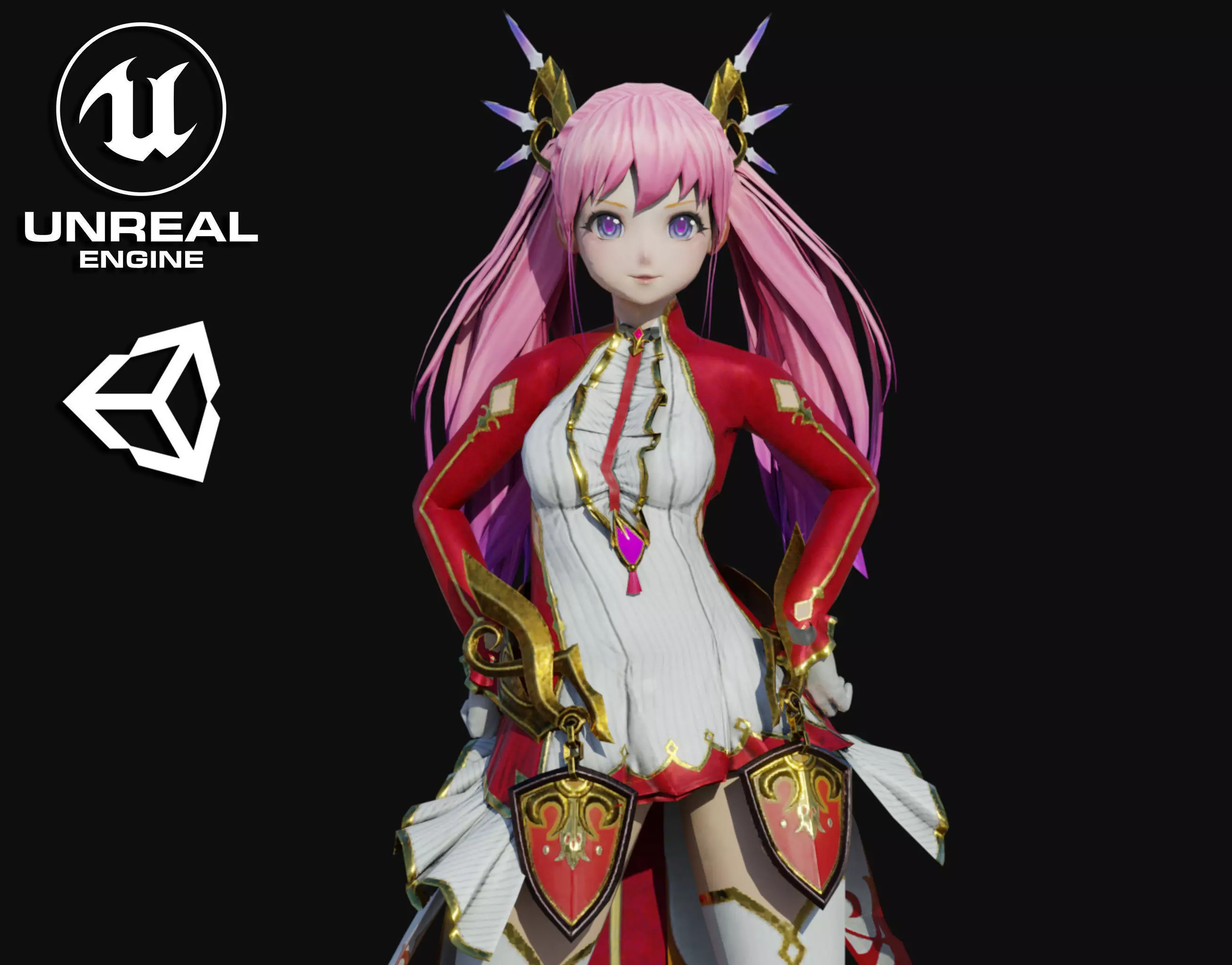 Beautiful low-poly character in 3d model rigged ready for applications in real-time.Sculpting models ZBrush and rigging in Maya.
