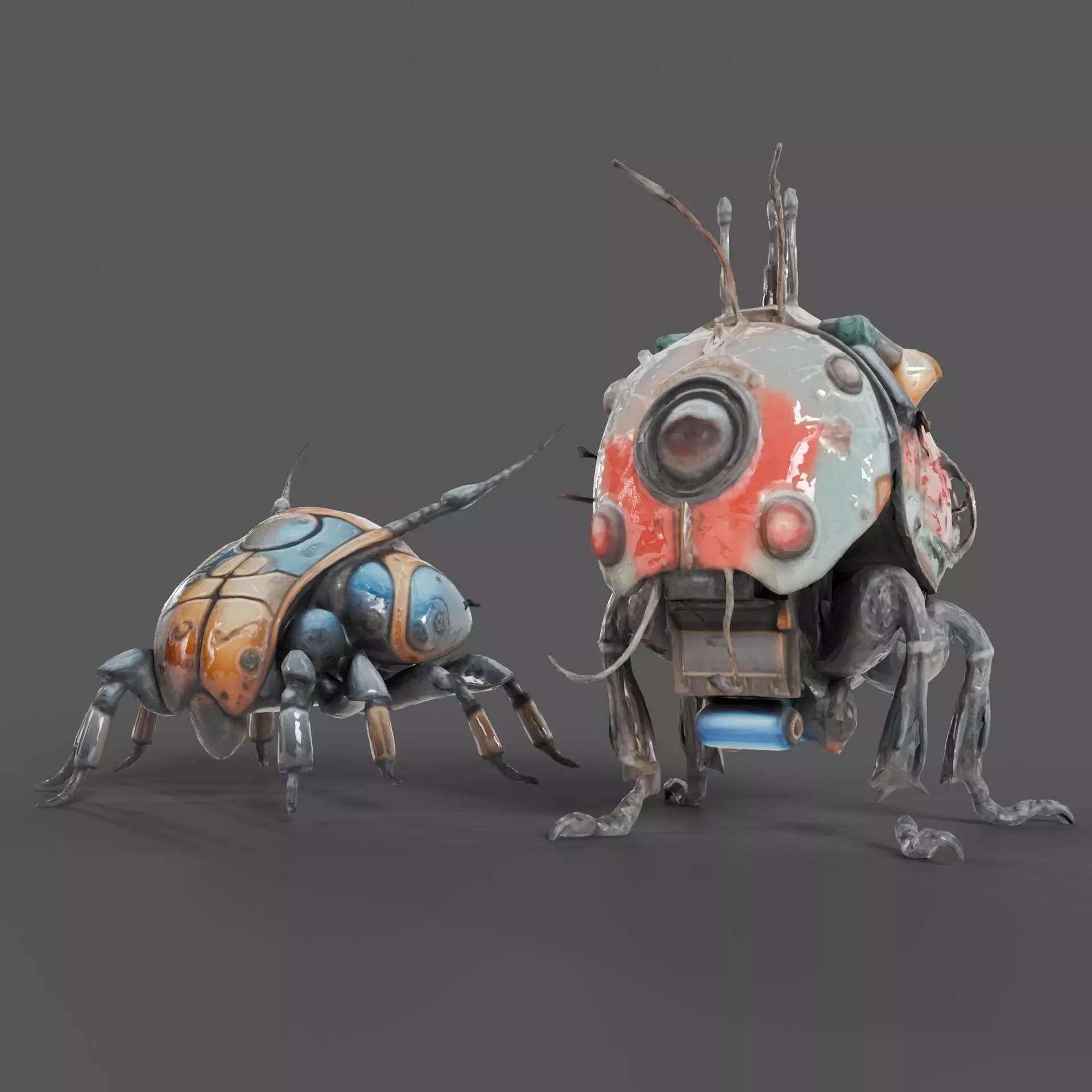 This unique set features two futuristic robotic insect creatures, designed with a blend of mechanical and organic aesthetics. The models were AI-generated and showcase imaginative detailing, including segmented shells, antennae, multi-jointed limbs, and stylized armor plating. While the mesh topology is not quad-clean and may require retopology for advanced rigging or animation, the models are ideal for concept art, sci-fi environments, and stylized game assets.Features:Includes two distinct robotic insect designsAI-generated sculpt with stylized geometryFormats included: .blend, .fbx, .stl, .obj, .glbGreat for concept art, rendering, and 3D printingNo rigging, animationMesh is not quad-clean (not optimized for deformation)Use Cases:Sci-fi game assets or propsConcept art and illustrationStylized collectibles or 3D printsKitbashing and mech design inspiration