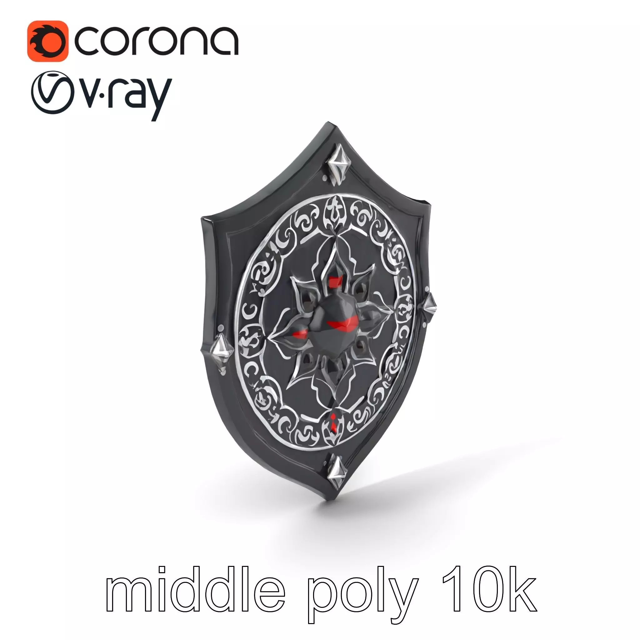 Each model has 3 levels of detail: low-poly, middle-poly, and high-poly, which allows for the use of this model in production rendering (such as 3ds Max, Maya, Cinema4D, Blender, Vray/Corona/Cycles, and all others), game engines (Unity and Unreal compatible), and interactive presentations, providing a choice of detail based on the LOD System principle. This shield model is perfect for fantasy video games, medieval settings, and as a collectible item in interactive exhibits.