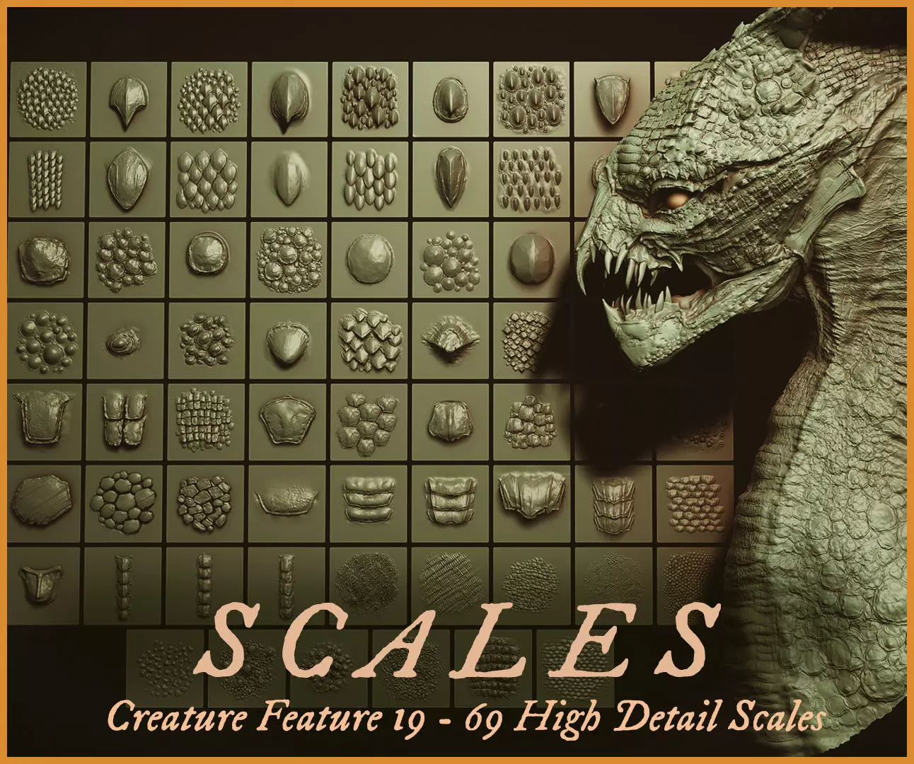 69 high-detail scales VDM sculpts for quick design of creature skins, leaning towards dragons, reptiles, snakes, or any fantastical creation Zbrush Master Subtool file housing all 69 Scale VDMsZbrush VDM Brush with all 69 scalesZbrush VDM Brush with only single scale VDMs (for people with older PCs and less memory)Zbrush VDM Brush with only cluster scale VDMs (for people with older PCs and less memory)OBJs : Each scale plane as separate mesh/files