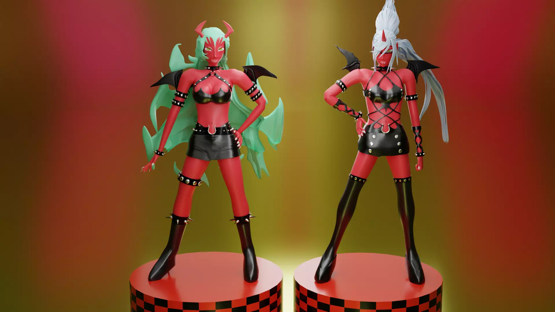 Scanty and Kneesocks Daemon Low Poly 3D Model.