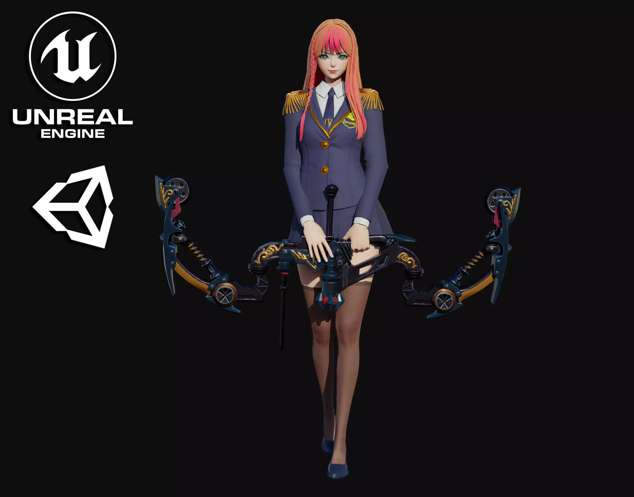 Beautiful low-poly character in 3d model rigged ready for applications in real-time.Sculpting models ZBrush and rigging in 3ds Max.