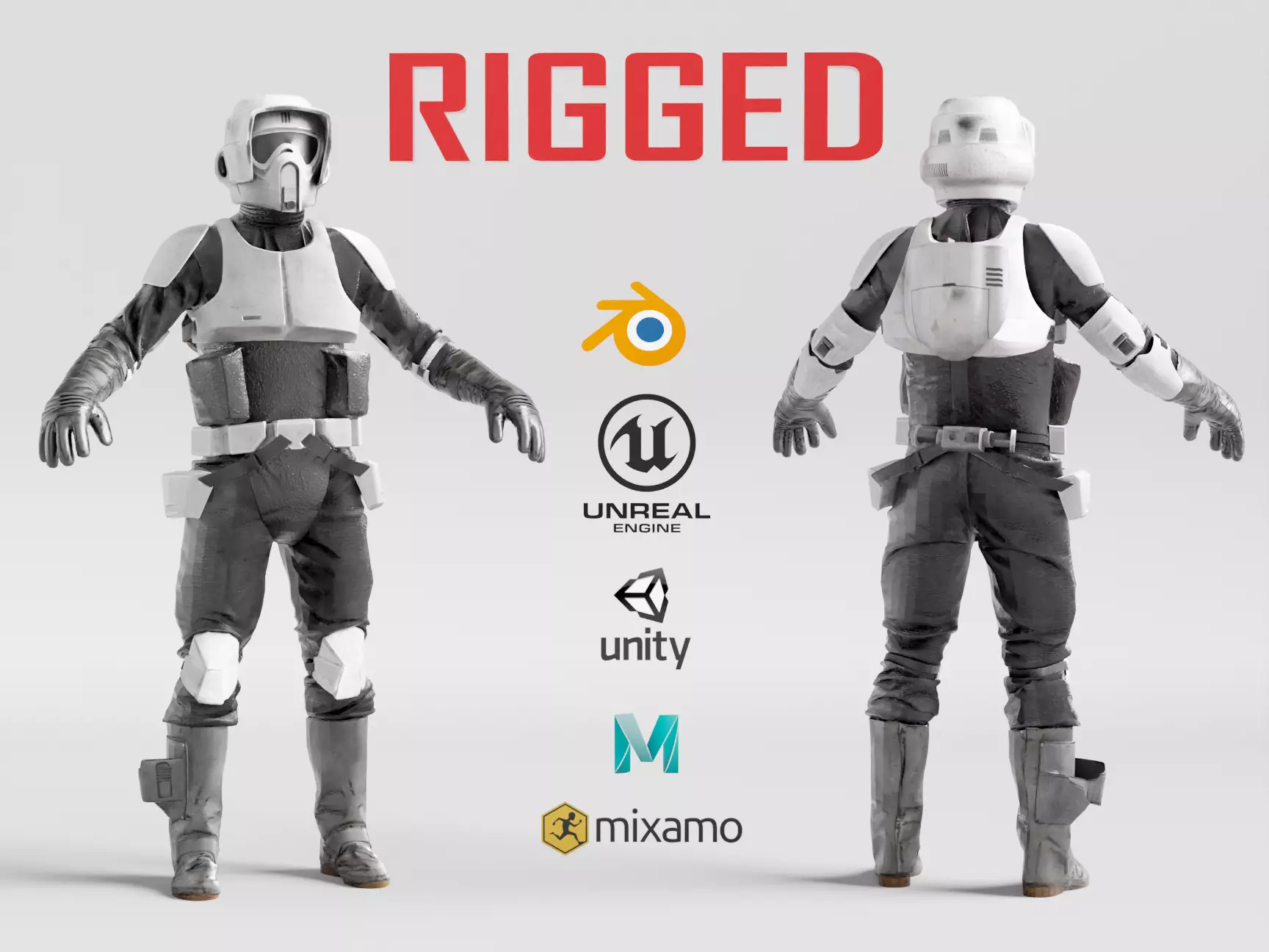 Tags:SCOUT TROOPER, Star Wars Battlefront, Rigged 3D Model, Game Development, Animation, Sci-Fi Soldier, Tactical Combat, Stealth Missions, Character Rigging, 3D Modeling, Speeder Bike, Star Wars Universe, Digital Art, Sci-Fi Action, Virtual Environment