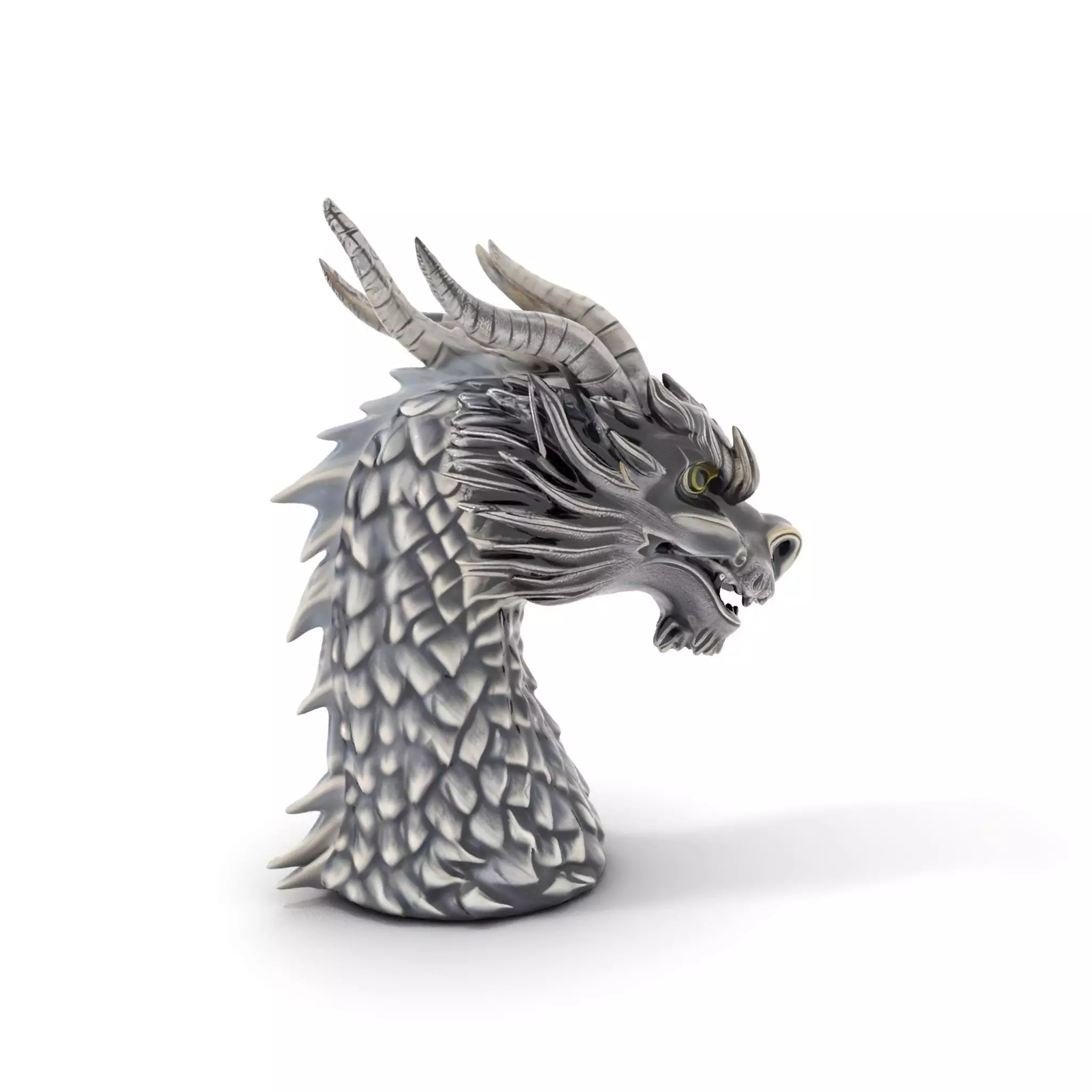 This intricately detailed Silver Dragon Head model is perfect for fantasy scenes, game design, or artistic projects. Crafted with realistic scales and fierce expression, it adds drama and mystique to your creations. Each model has 3 levels of detail: low-poly (1000 triangles for mobile), middle-poly (10,000 triangles for environment), and high-poly (100,000 triangles), allowing usage in production rendering (such as 3ds Max, Maya, Cinema4D, Blender, Vray/Corona/Cycles, and more), game engines (Unity and Unreal compatible), and interactive presentations, providing a choice of detail based on the LOD System principle.