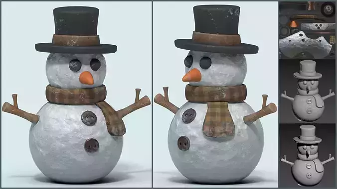 Simple Stylized Lowpoly Snowman game prop made in 3ds Max 2023 and textured in Adobe Substance Painter