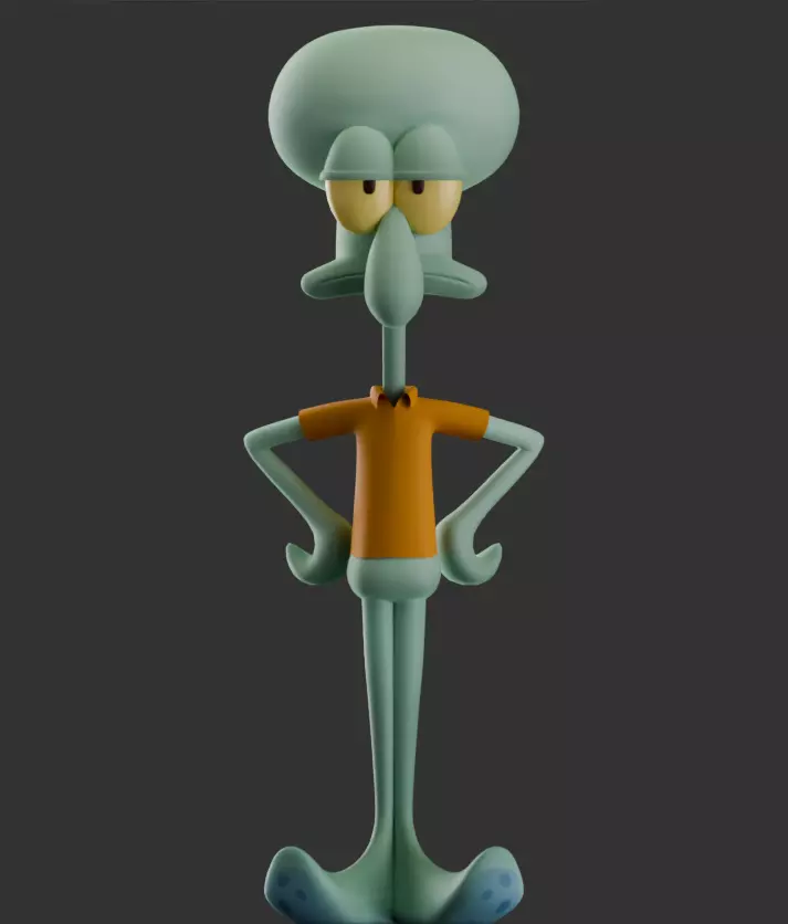 Fully modeled character with accurate cartoon proportions and stylized detailsIncludes signature features: large nose, droopy eyelids, light blue skin tone, brown shirt, and tentacle limbsUnrigged model, ready for custom rigging, posing, or sculpting edits