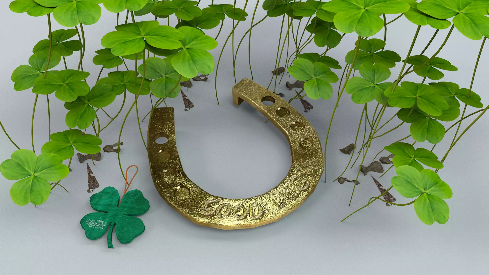 St. Patrick's Horseshoe - A horseshoe and a clover to hang.Made in Cinema4D R19 and exported to 3ds, dae, fbx, stl, obj, blend, and glb files.The St. Patrick's Horseshoe has PBR textures in 2k UV mapping.I hope you like it and that it's useful in your scene.Thank you for visiting, RenatoDalleP.S.: Note the date: March 17th, St. Patrick's Day celebration.