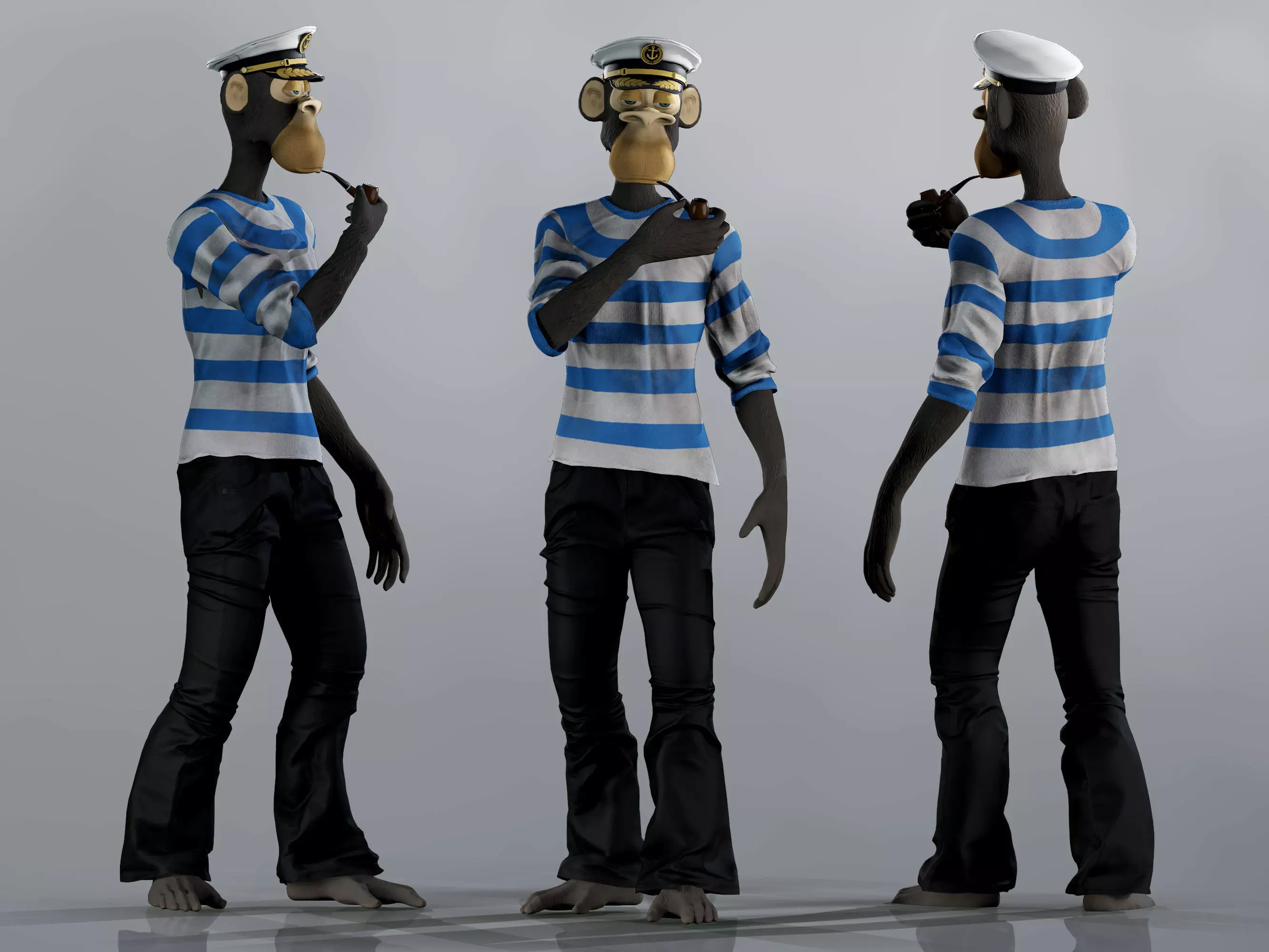 Detailed low poly 3D character Stylised Sailor Ape