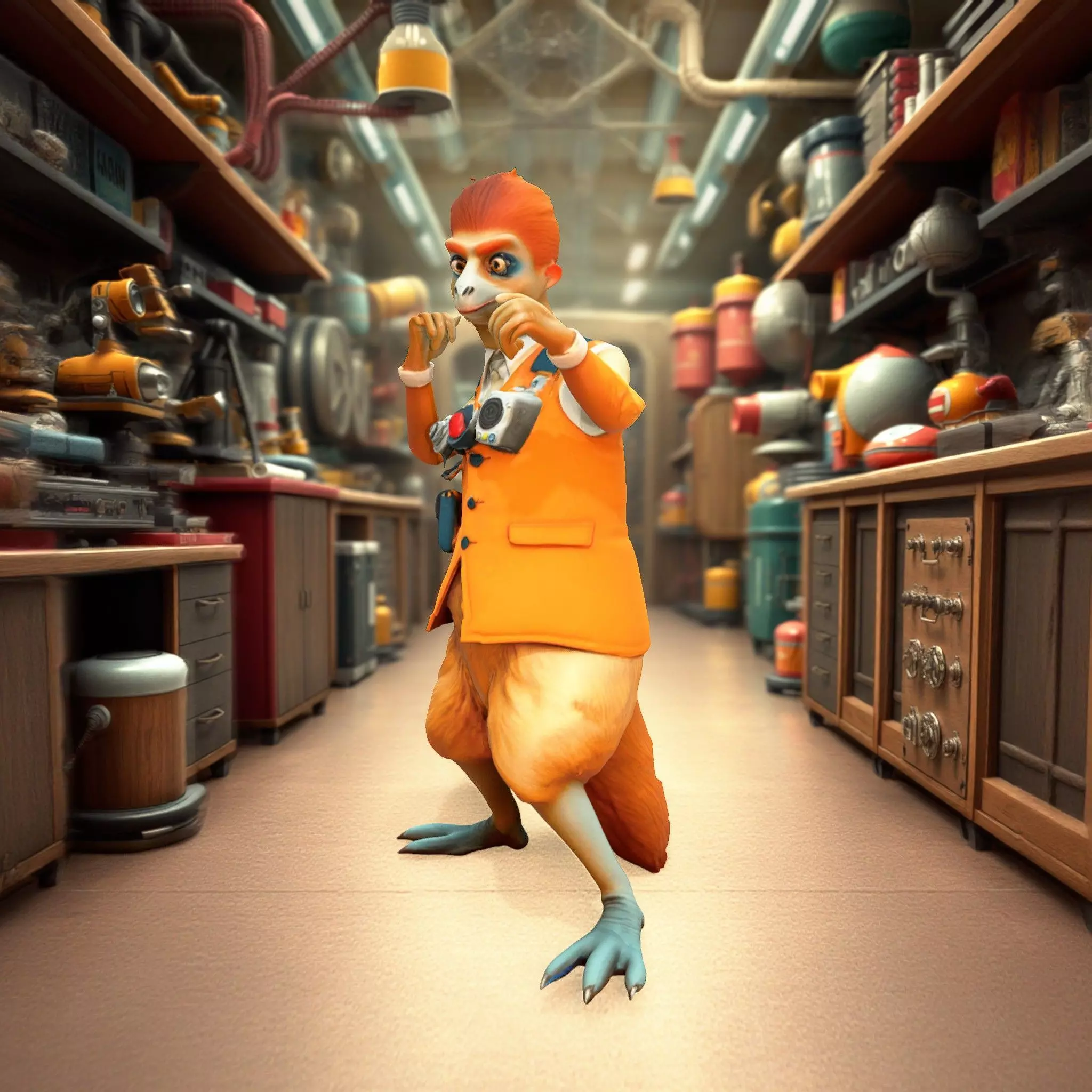 This charming anthropomorphic character model features an animal in a stylish orange vest, equipped with gadgets. Ideal for animations, educational content, and games, it brings a playful and professional element to your projects.