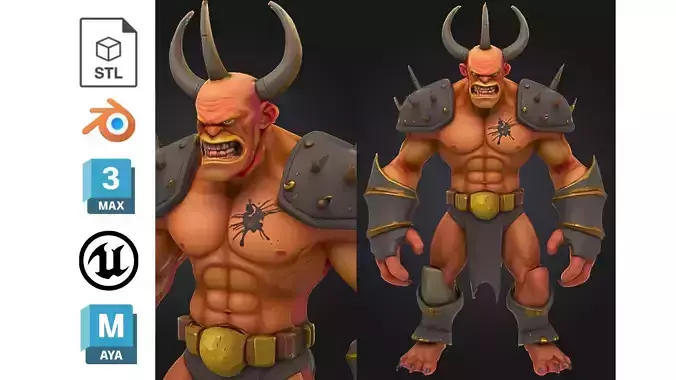 Visual Style: StylizedRecommended Use Cases: Third-person action RPGs, fantasy games, cinematic trailers, boss fightsStandout Details: Huge curved horns, spiked shoulder pads, scarred skin, fantasy tattoos, detailed musculatureCompatible With: Unreal Engine, Unity, Blender, 3ds Max, Maya, and other major software