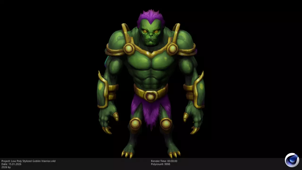 This Stylized Low Poly Goblin Warrior is a game-ready character designed with a strong fantasy aesthetic. It features exaggerated proportions, clean topology, and hand-painted textures, making it ideal for stylized games, mobile projects, and real-time applications.
