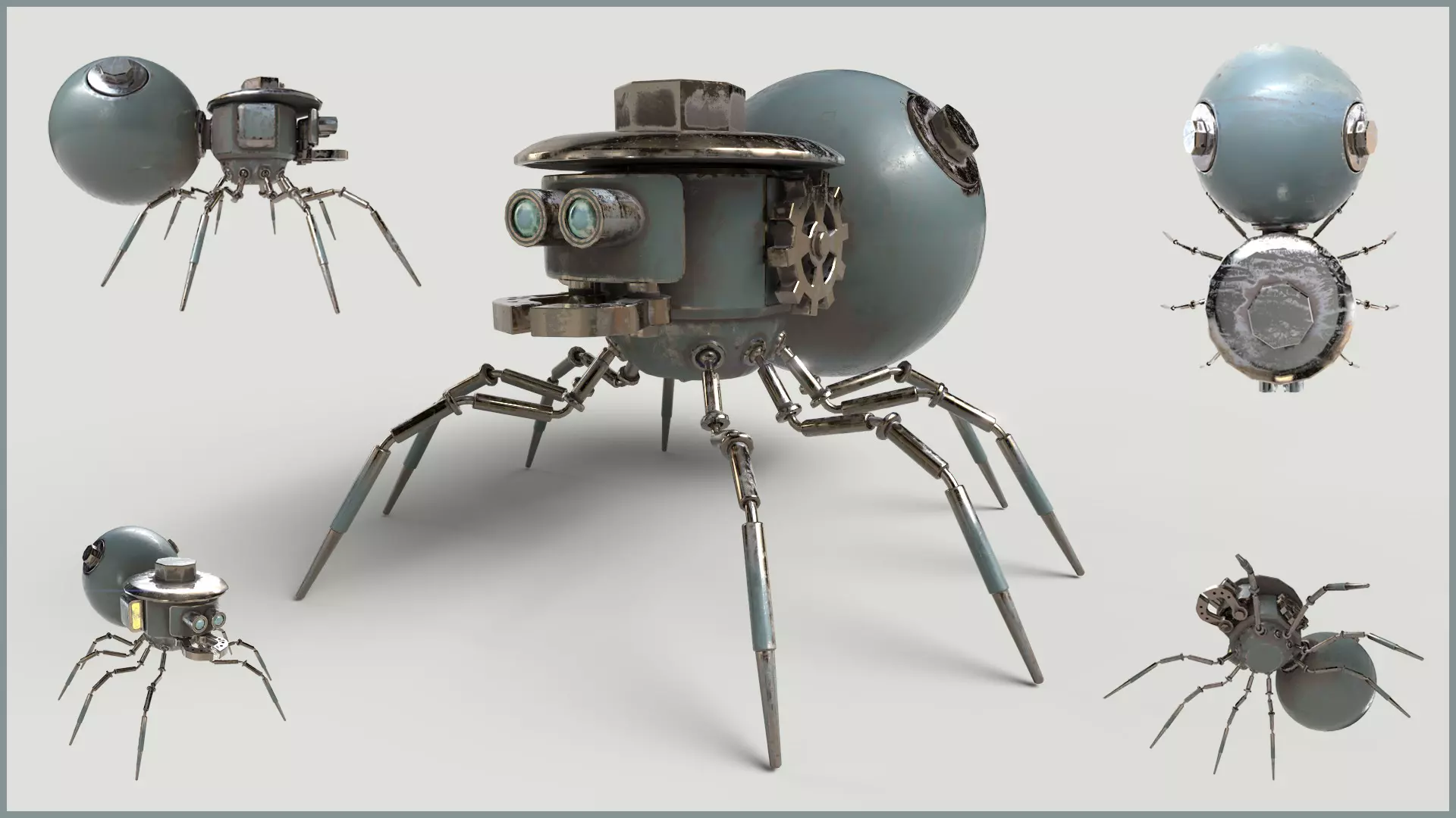 Stylized Mechanical Spider Robot model made in 3ds Max 2023 and textured in Substance Painter