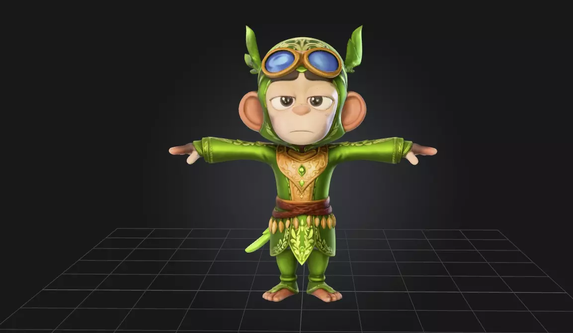 High-quality stylized monkey adventurer character designed for games, animations, and real-time projects.The model features a charming cartoon style with detailed fantasy clothing, goggles, and accessories, giving it a unique explorer / magical adventurer look.