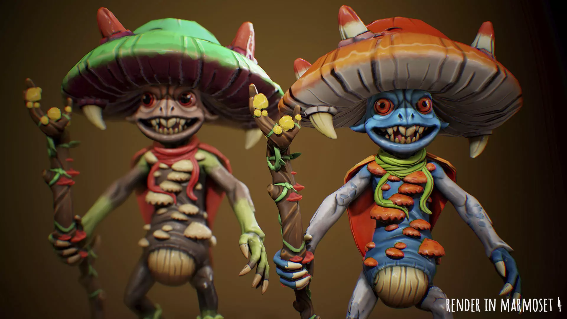 The images are rendered in UE4, marmosetGame low-poly Stylized Mushroom 3