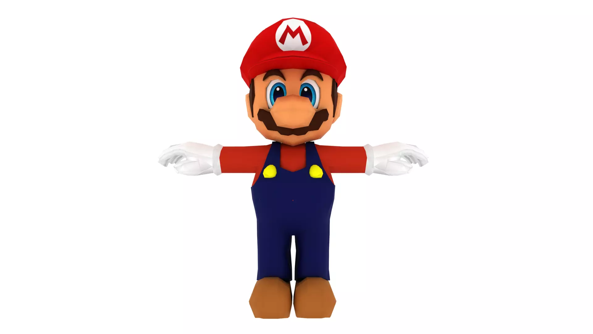 This is a Mario Bros low poly 3D model. That will enhance detail to any of your rendering projects. The model has a fully textured and detailed design that allows for close-up renders, and was originally modeled,texturized in Autodesk Maya 2018 and rendered with Arnold. The model only have Uvs dones in the marios eyes and hat logo.It contains the Mario in T pose with all the materials. It very cute model,it is very colourful.