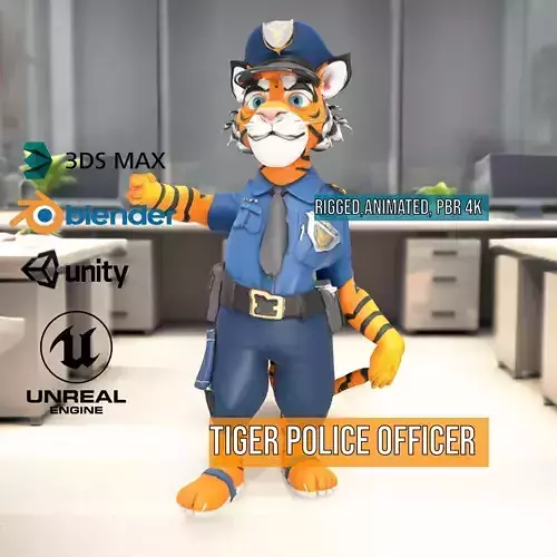 This Tiger Police Officer model pack offers a vibrant and engaging 3D character, perfect for animated films, games, and promotional materials. With a detailed police uniform and expressive features, this character adds unique personality to any project. Each model has 3 levels of detail: low-poly (1000 triangles for mobile), middle-poly (10,000 triangles for environment), and high-poly (100,000 triangles), which allows for the use of this model in production rendering (such as 3ds Max, Maya, Cinema4D, Blender, V-Ray/Corona/Cycles and all others), game engines (Unity and Unreal compatible), and interactive presentations, providing a choice of detail based on the LOD System principle. The model's textures are PBR, Diffuse, NormalMap, and reflection/roughness/metallic, which are suitable for any modern rendering engine. All models are accurately unwrapped and have no overlapping UV. All textures are 4096x4096 in size. Please like and leave a comment for the model if you enjoyed it.
