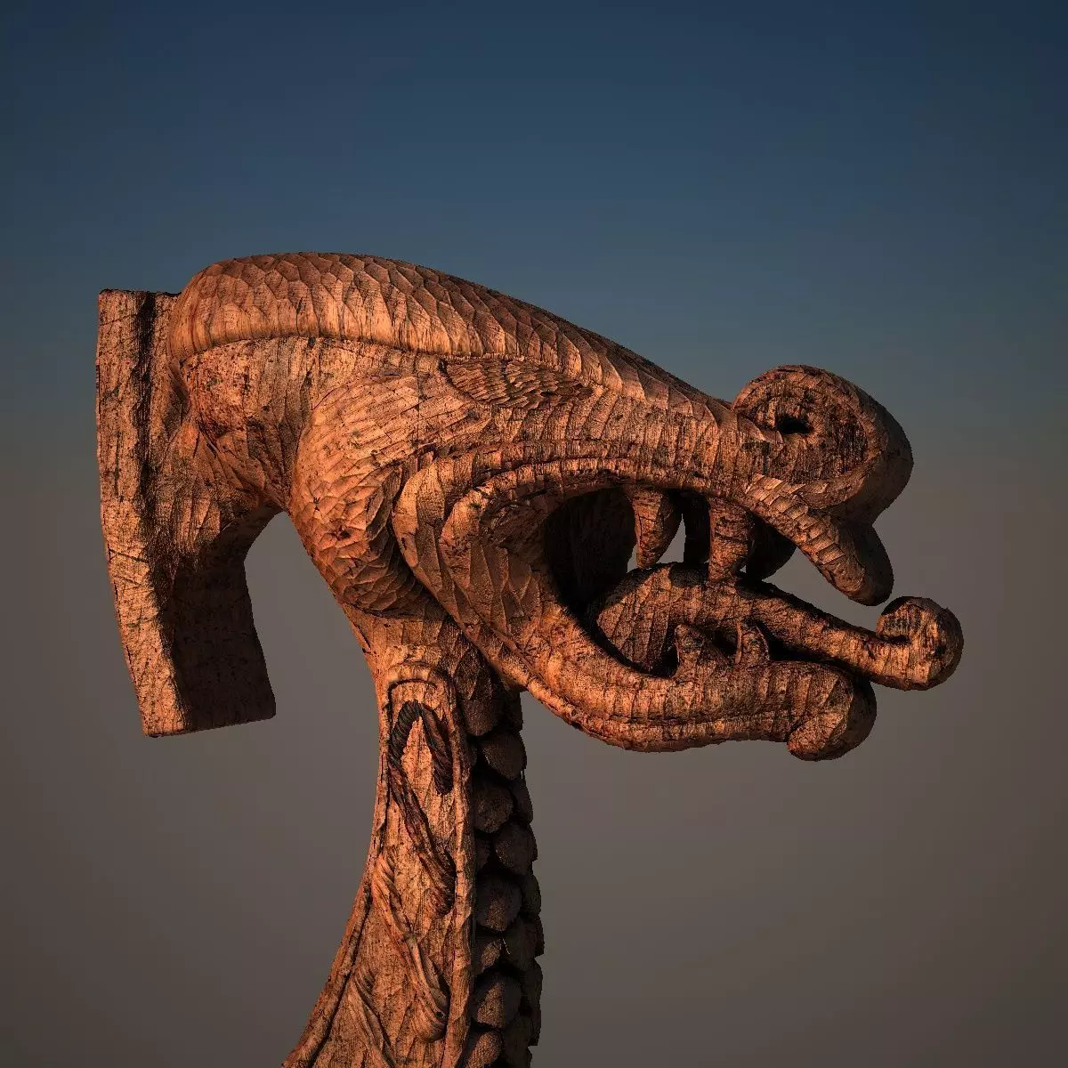 This is a model of a (carved) dragons head, which I´ve modeled to be used with a viking longboat.