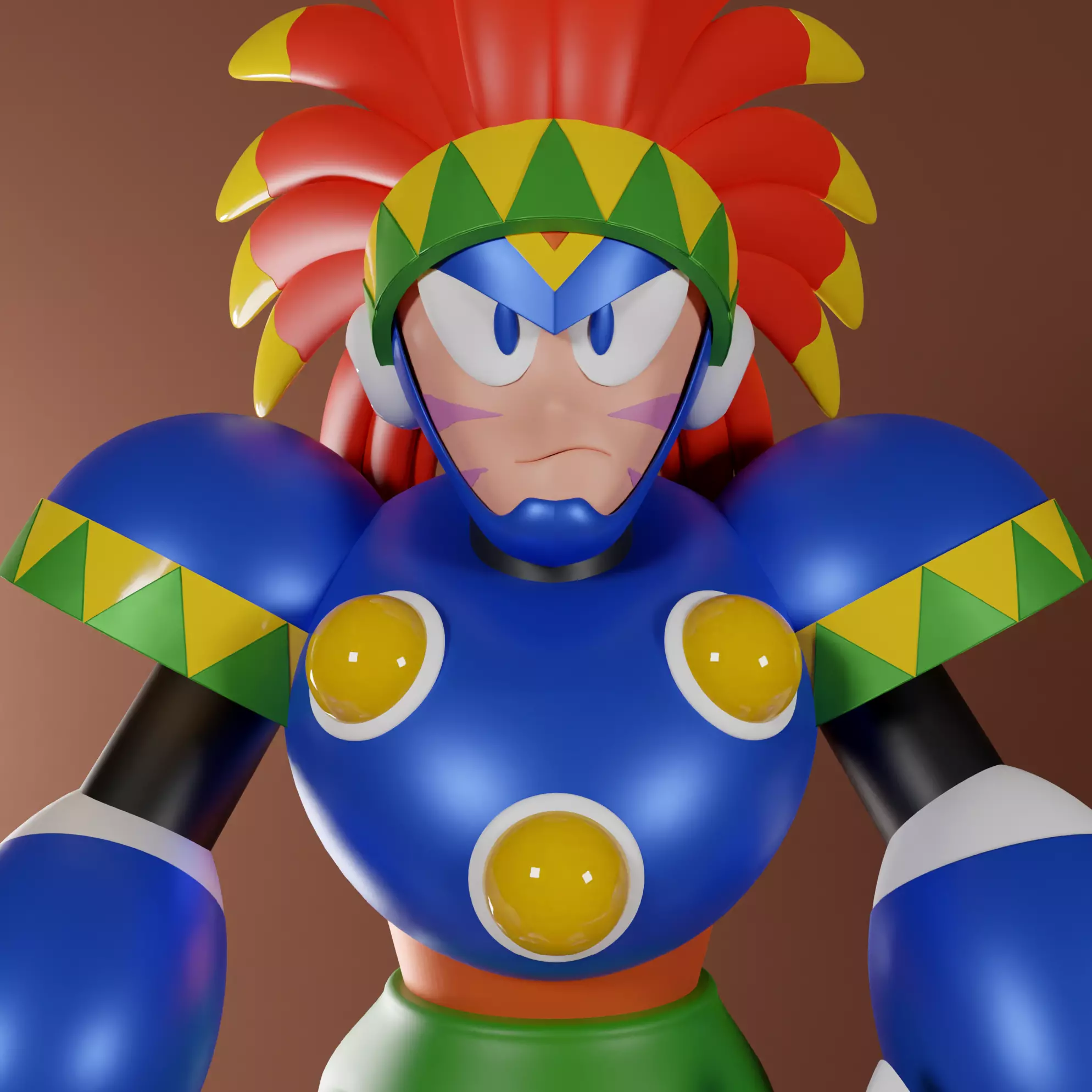 a combat Robot Master from Mega Man 6 designed with an Aboriginal North American warrior motif. Unlike the other seven Robot Masters from Mega Man 6, Tomahawk Man was built purposely for the First Annual Robot Tournament. However, he was reprogrammed by Mr. X to help him conquer the world, and was defeated by Mega Man.