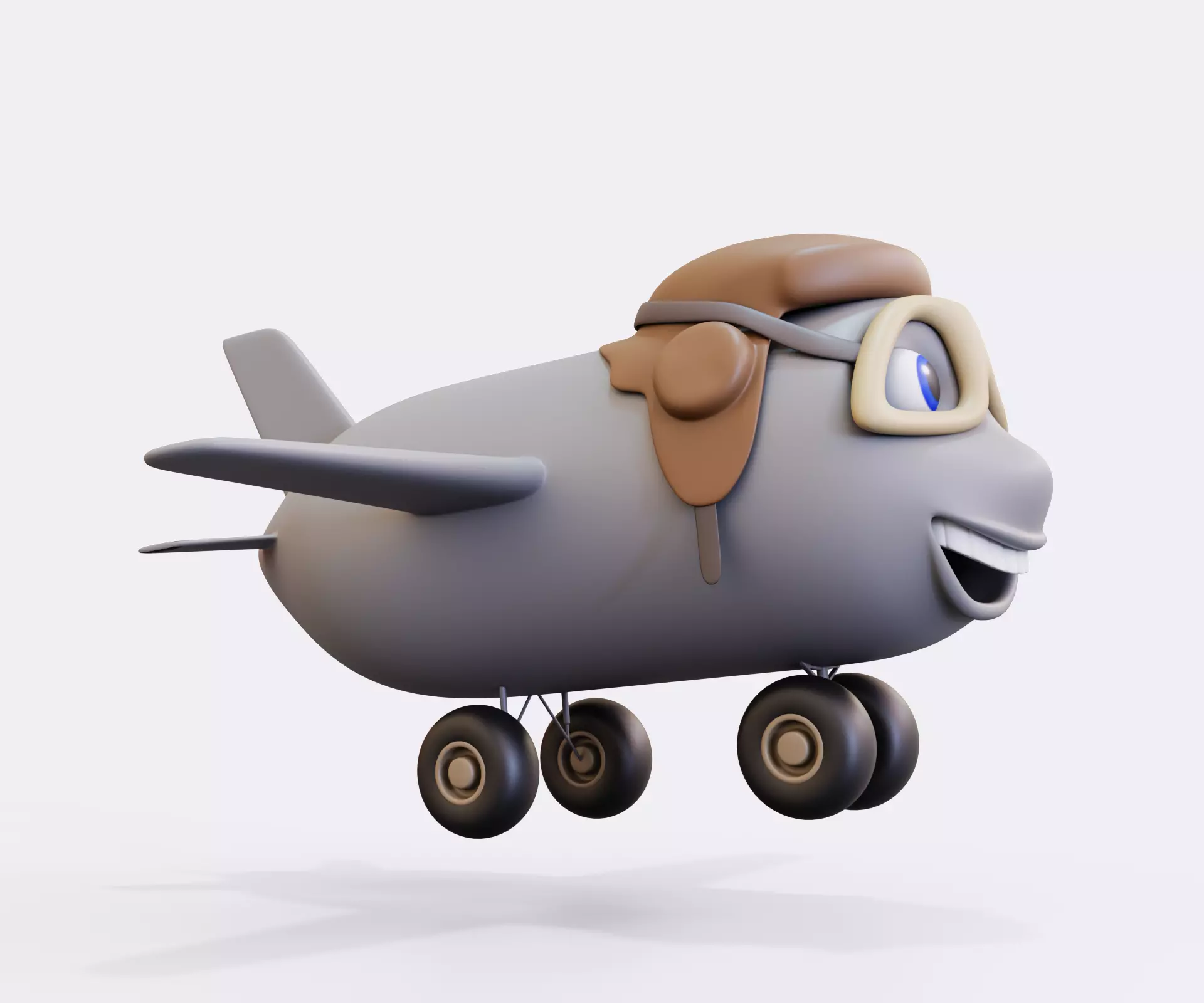 Hello! This is a cartoon airplane model with eyes.All unnecessary was removed from the scene, only one object; logical names have been assigned. The model consists of one object. Materials are set up in the blend file.