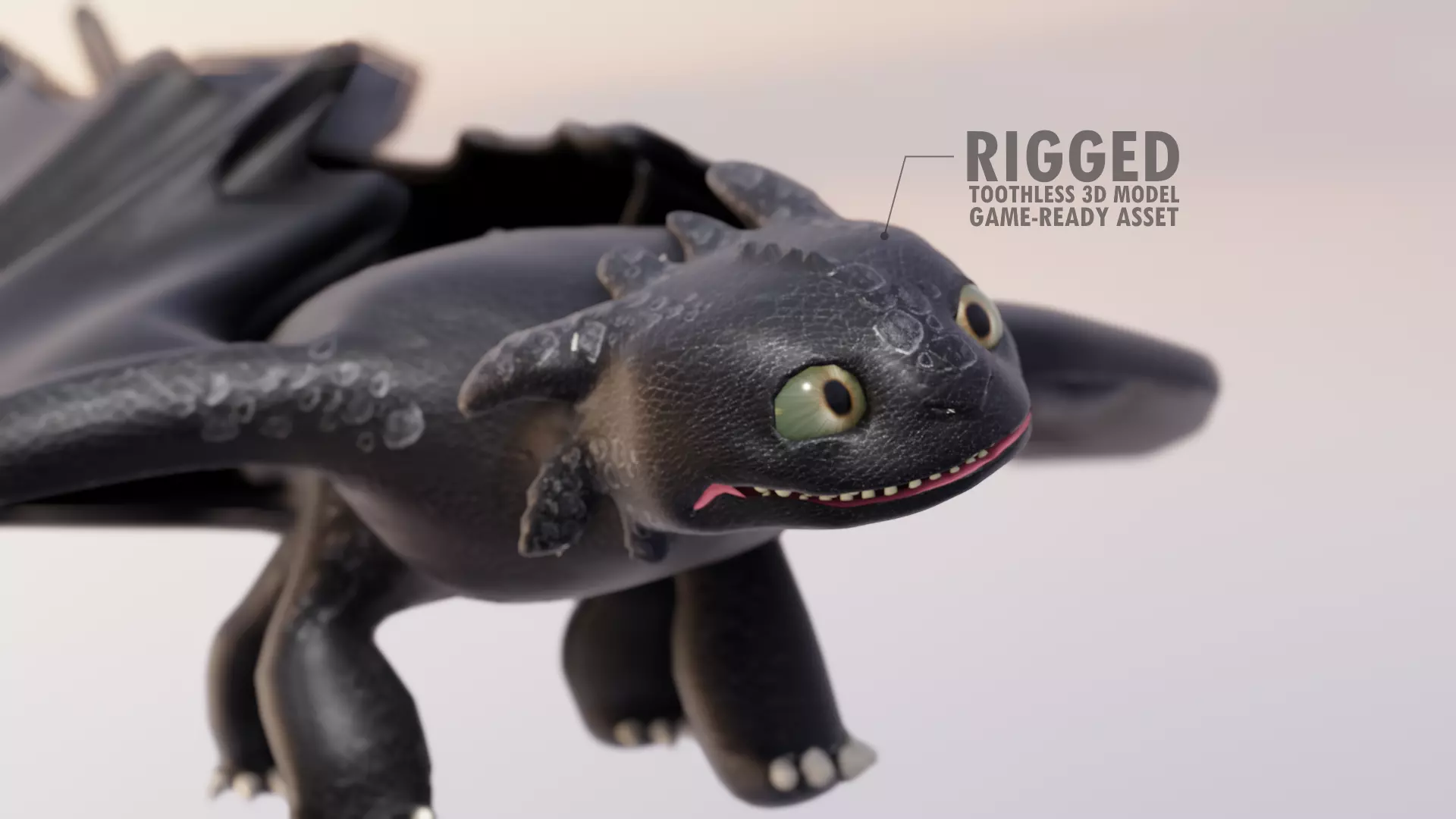 The Toothless Night Fury 3D model is a highly-detailed asset with a low poly count, high-quality rig and textures that include normal maps. Its fine-textured design and wide range of animation possibilities capture Toothless's unique features and personality, making it an effective game-ready asset and CGI model.